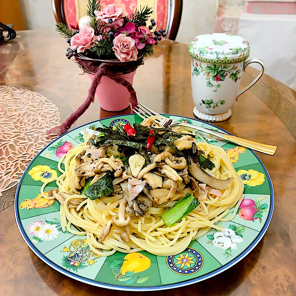 #日清やさし〜く香るエキストラバージンオイル # #きのこパスタ