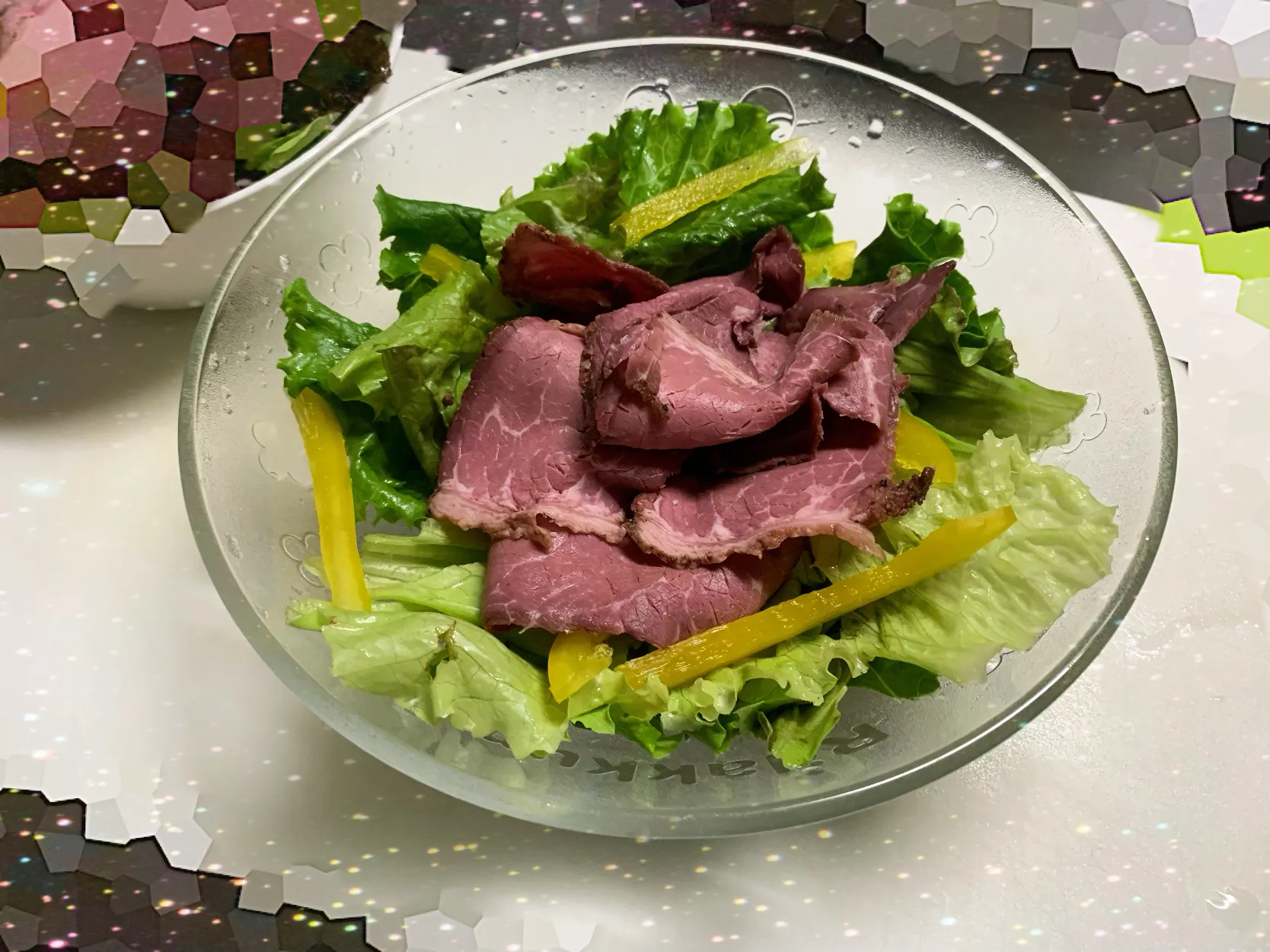 ローストビーフは手づくりでも市販のものでも。お好みのドレッシングで🙆♀️