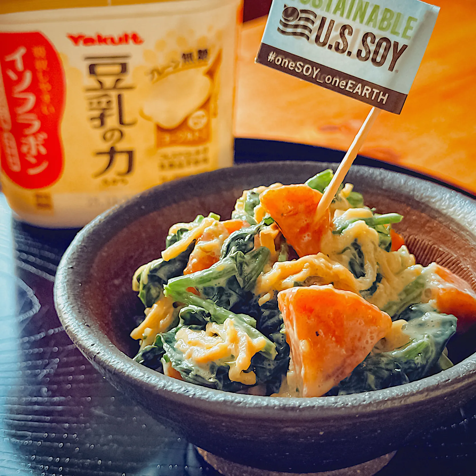 豆乳の力は通常のヨーグルトに比べて酸味も穏やかで、尚且つほんのりやさしい大豆の風味も持ち合わせているので、白和えの和え衣にしても違和感なく美味しく食べれちゃう😋