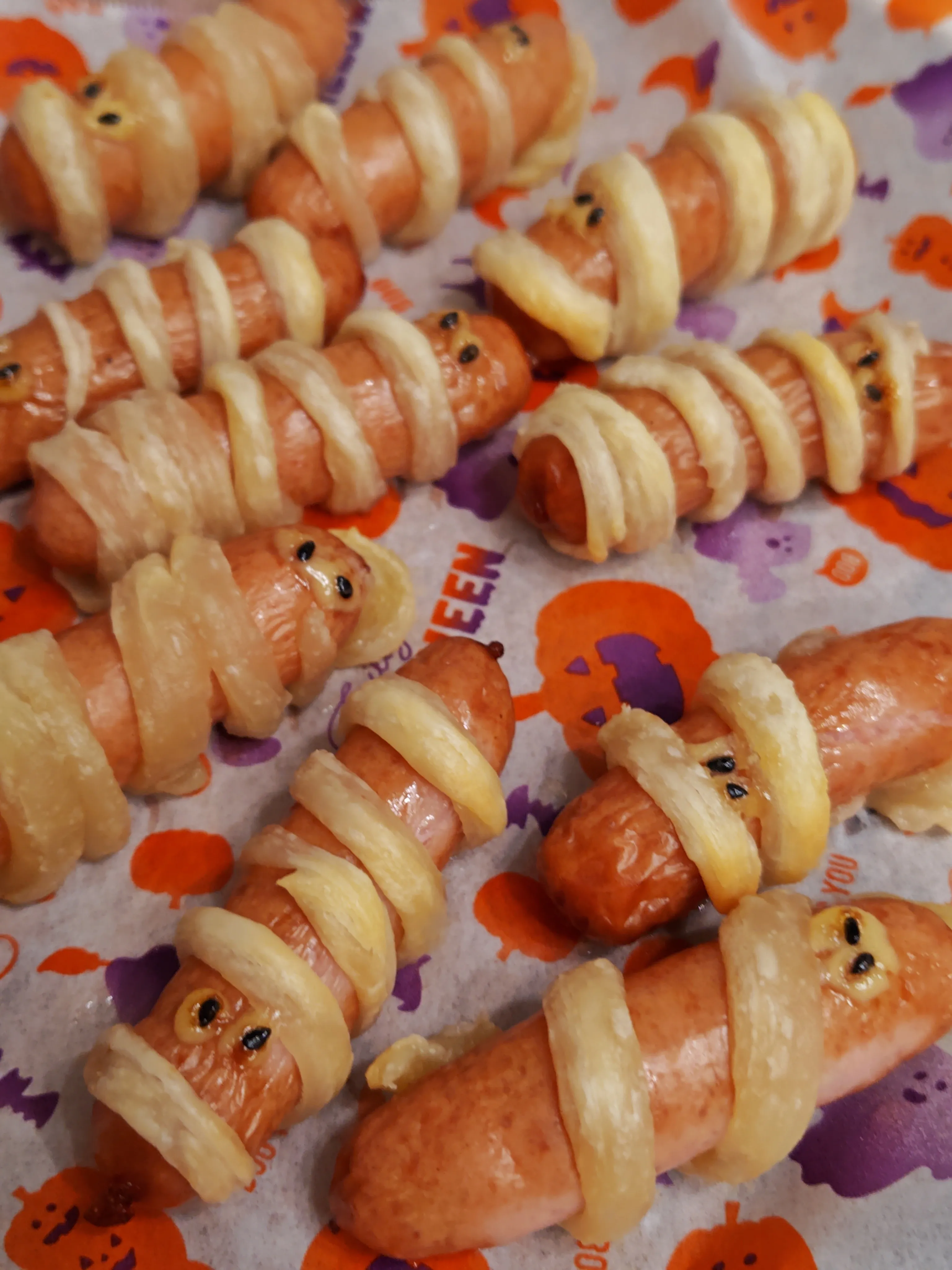 ハロウィンの献立の定番になってきましたミイラのウィンナーパイ👻