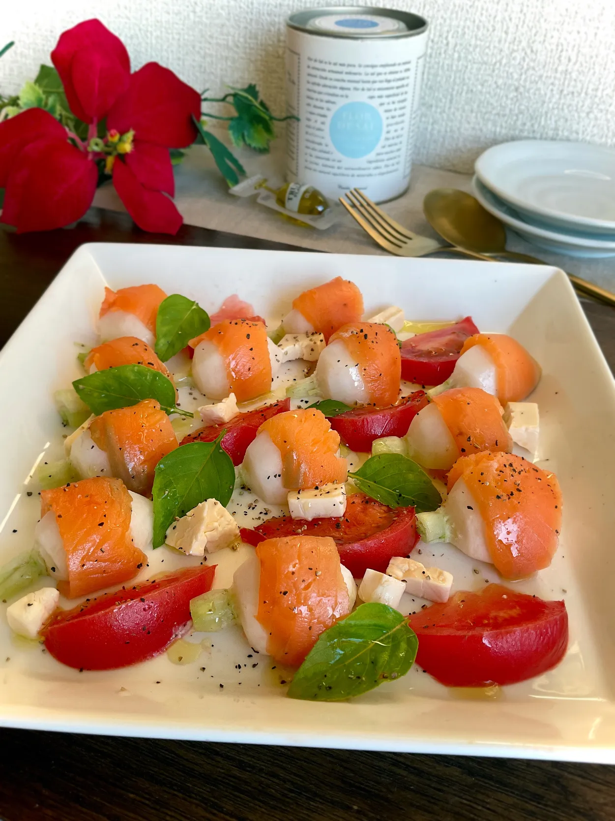 蕪とサーモンでめちゃめちゃオシャレなサラダにっ゚+.゚(´▽`人)゚+.゚✨