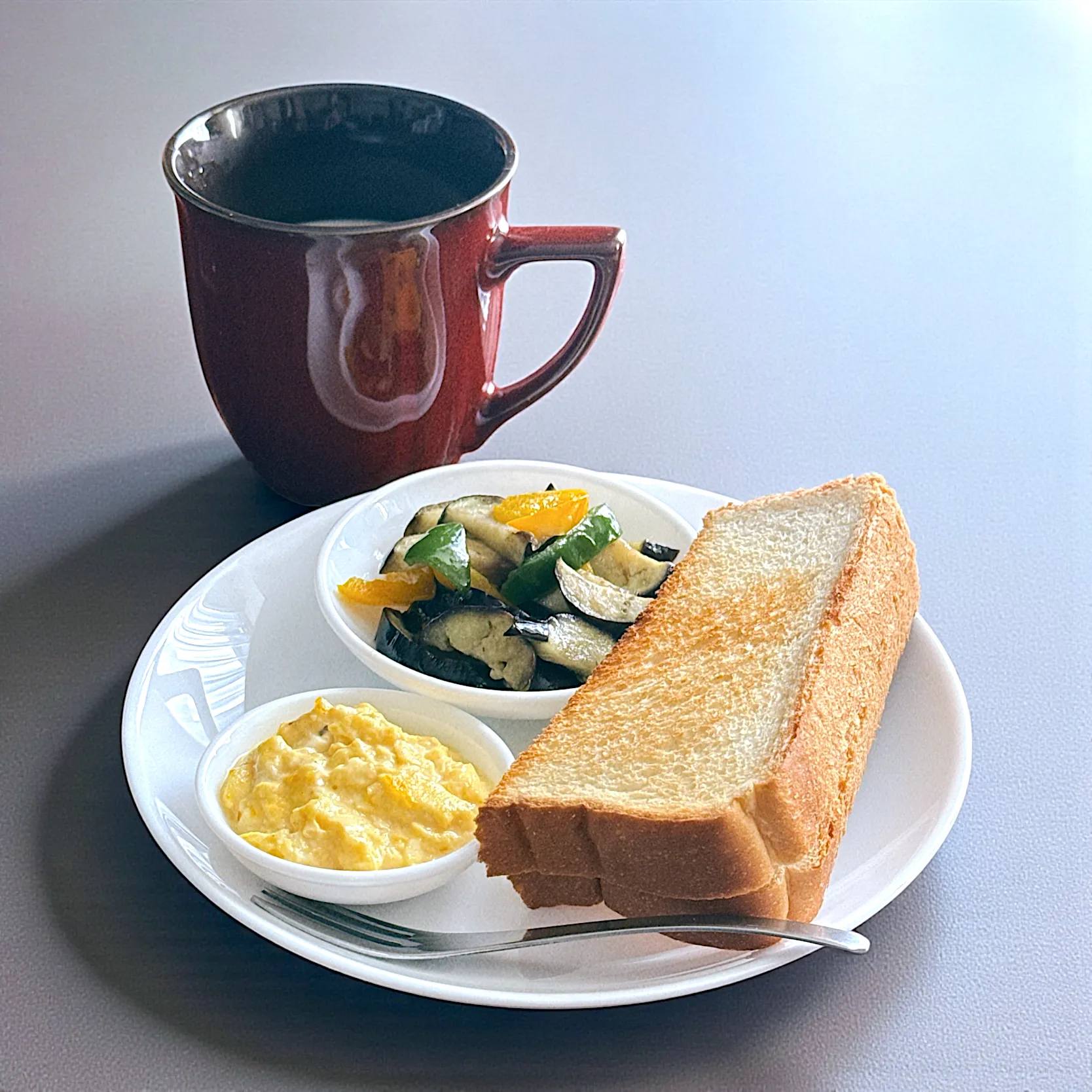 ナス、パプリカ、ピーマン、コンソメ、塩コショウ、サラダ油。