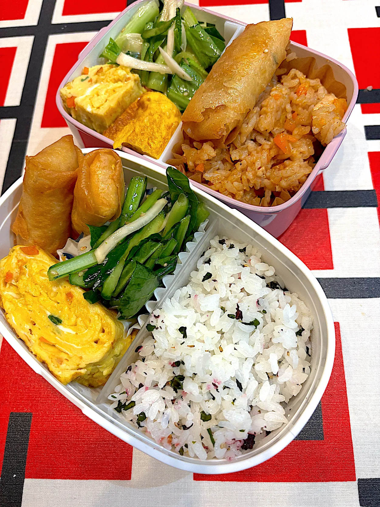 晩御飯にした、ニンジンと豆苗のコンソメスープの残りに卵と米粉を足して、だし巻きたまごにしました。