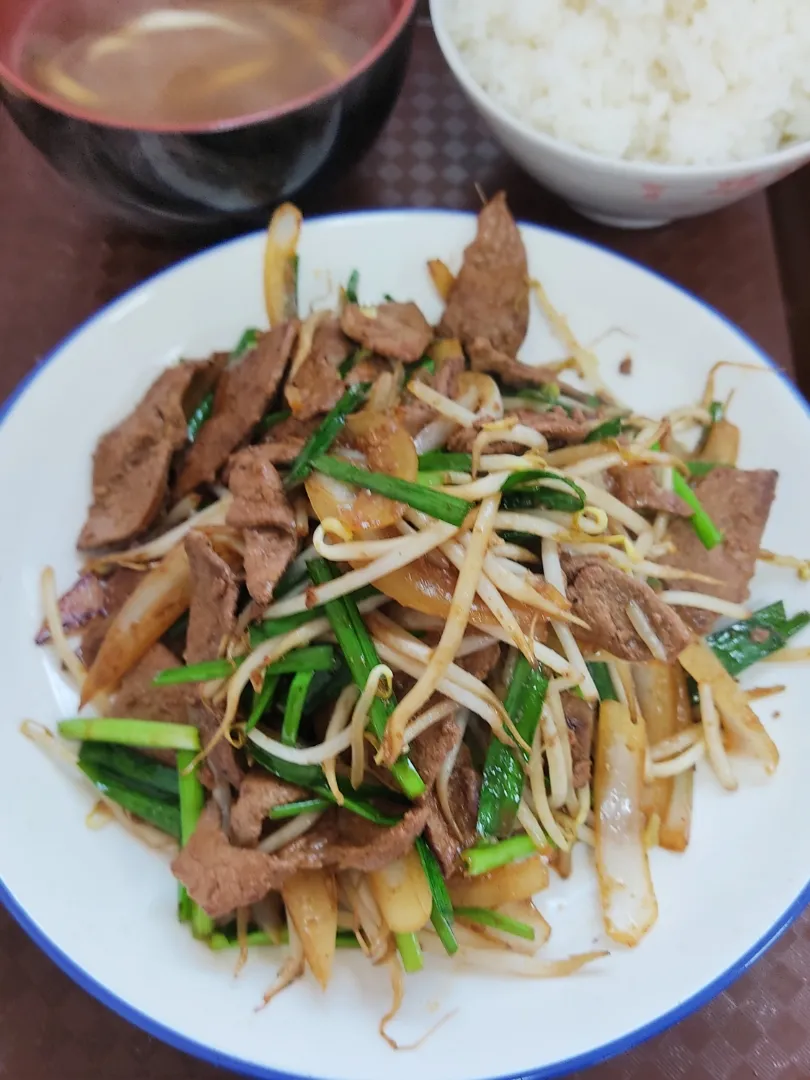 そばとみそ汁の店あかの お店の名前に「そば」と「みそ汁」が入っているのに、レバニラ炒めを注文してしまいました。 スープはみそ汁ではなく、沖縄にありがちな沖縄そば。 一口すすると「出汁うまっ!」なカツオ風味強めの味。 次に来る時はそばだな。