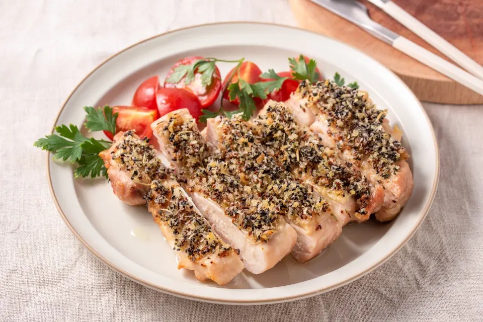 おもてなしにもおすすめ。サクサクパン粉とハーブが香る鶏もも肉のグリルです。
