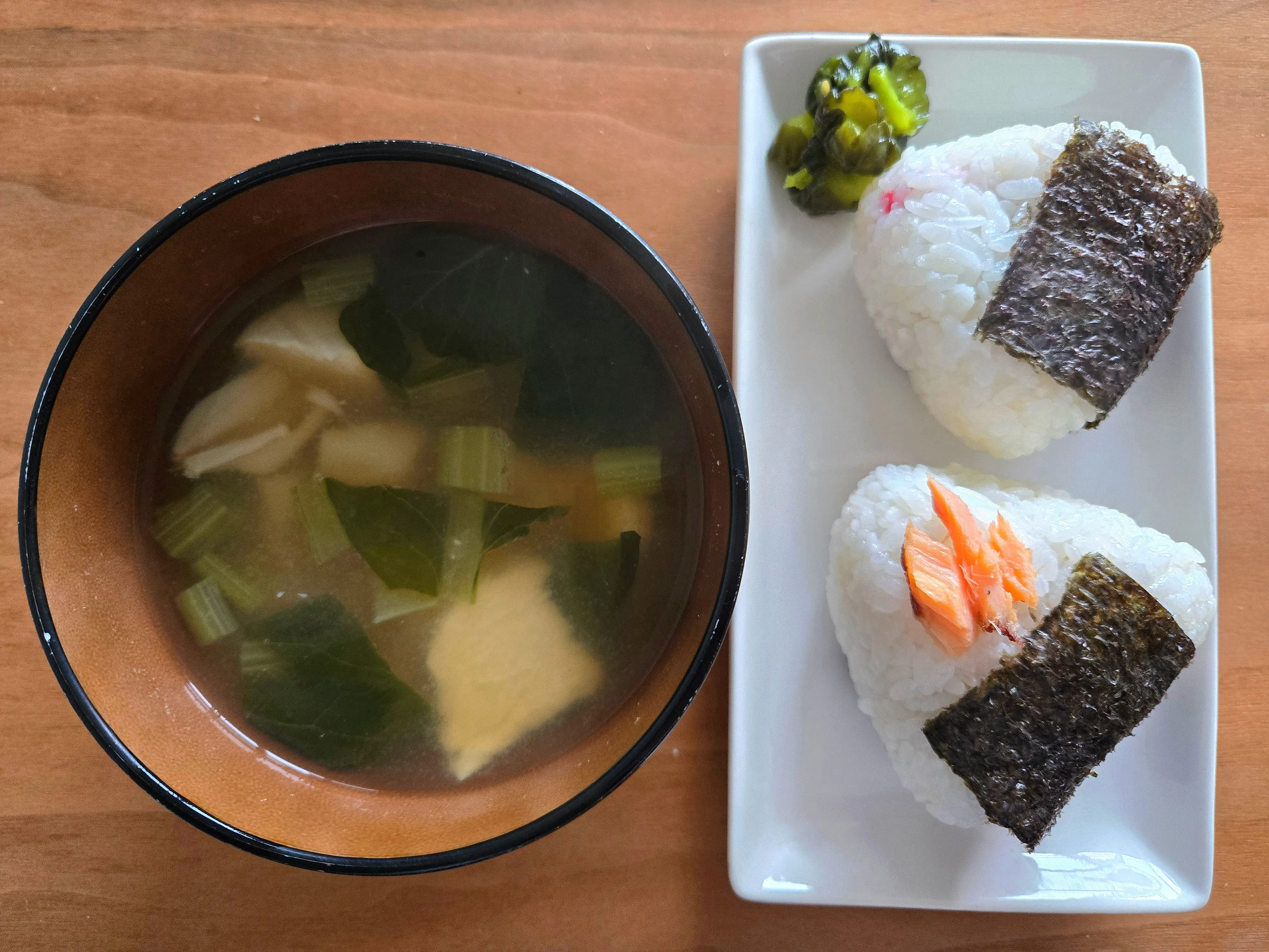 ひぃふうみそ汁deおにぎり🍙朝ごはん