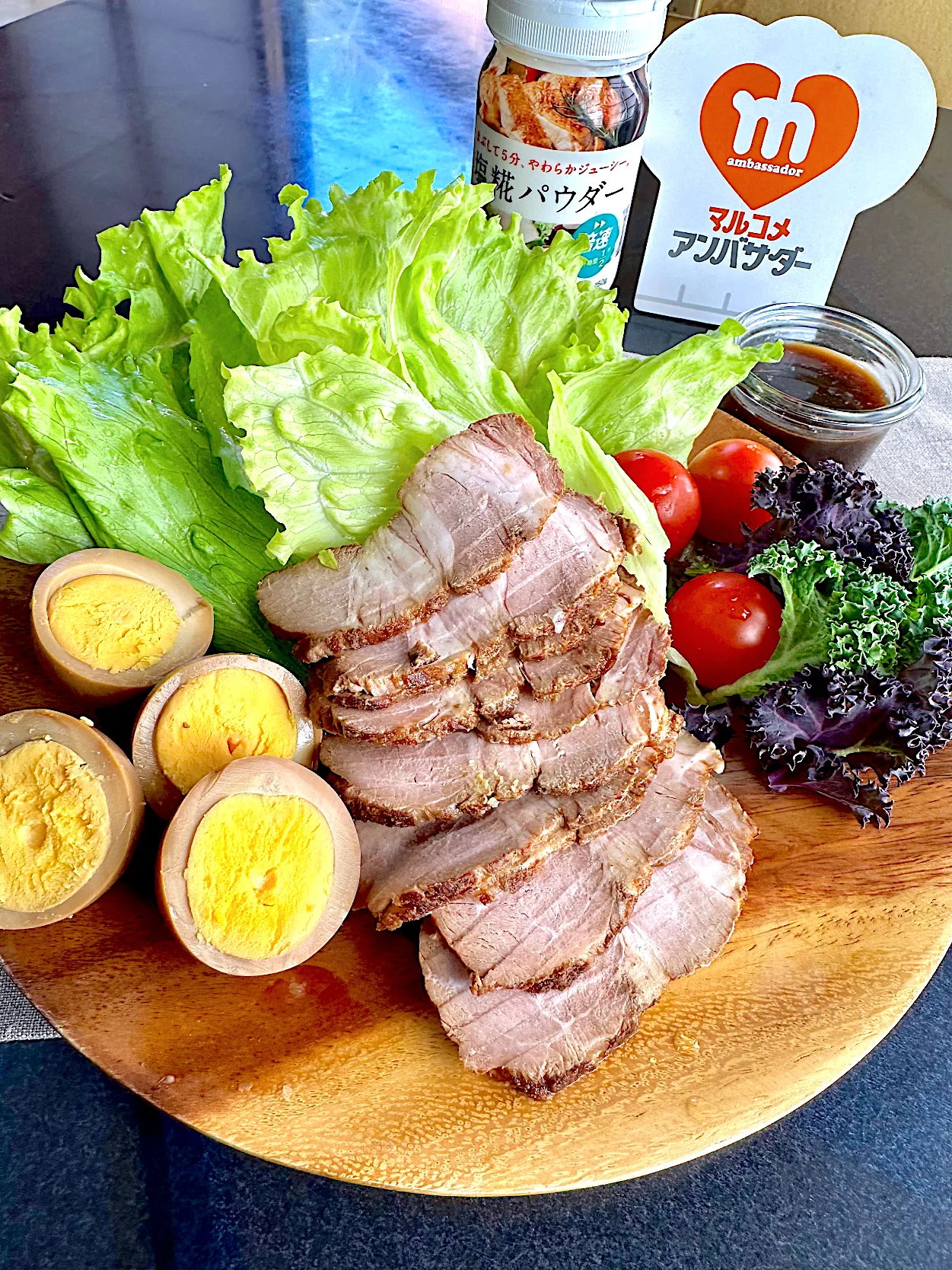 レタスに挟んで煮豚をいただきます😊