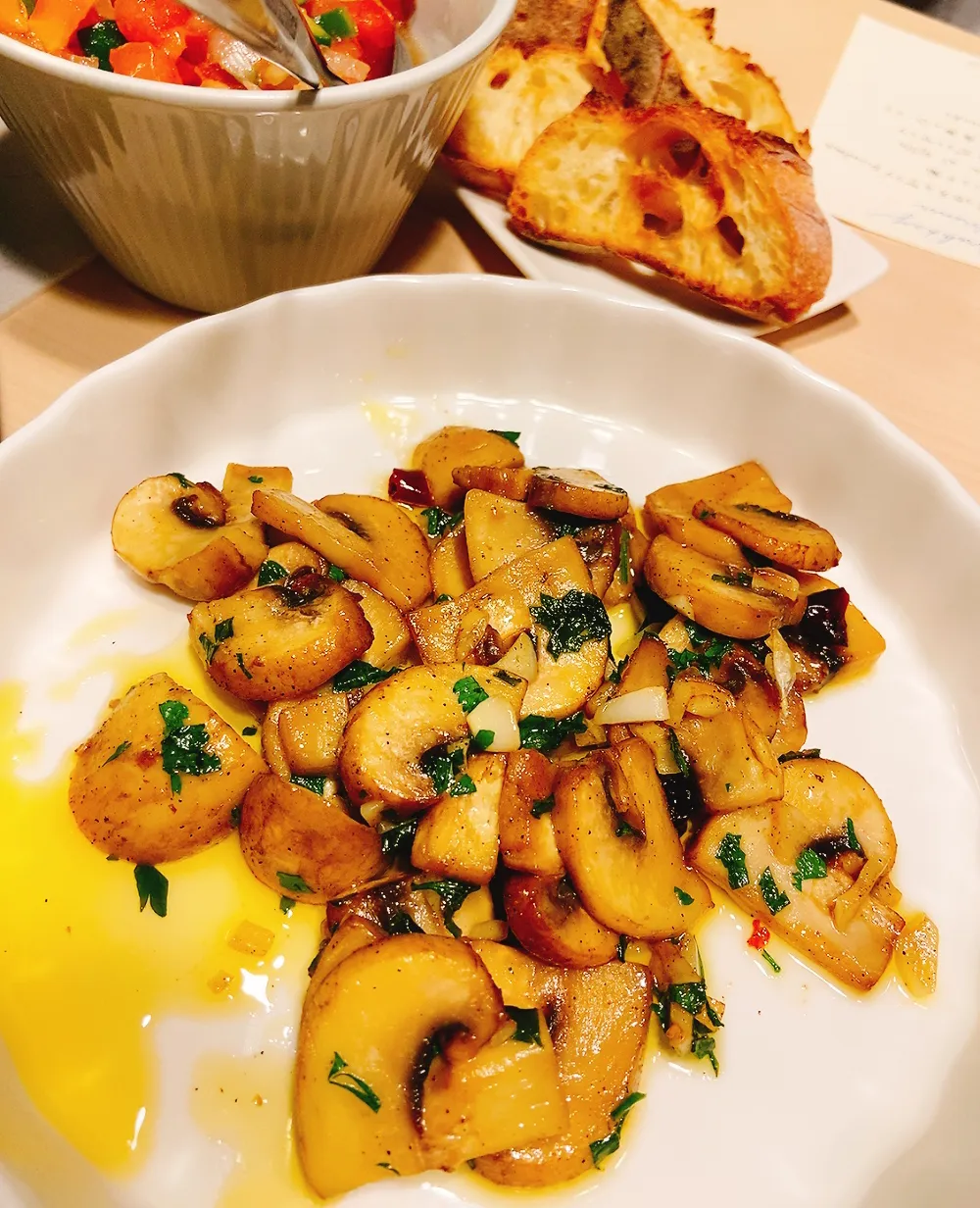 #アヒージョ #アルアヒージョ #マッシュルーム #オリーブオイル #バケット #スペイン料理