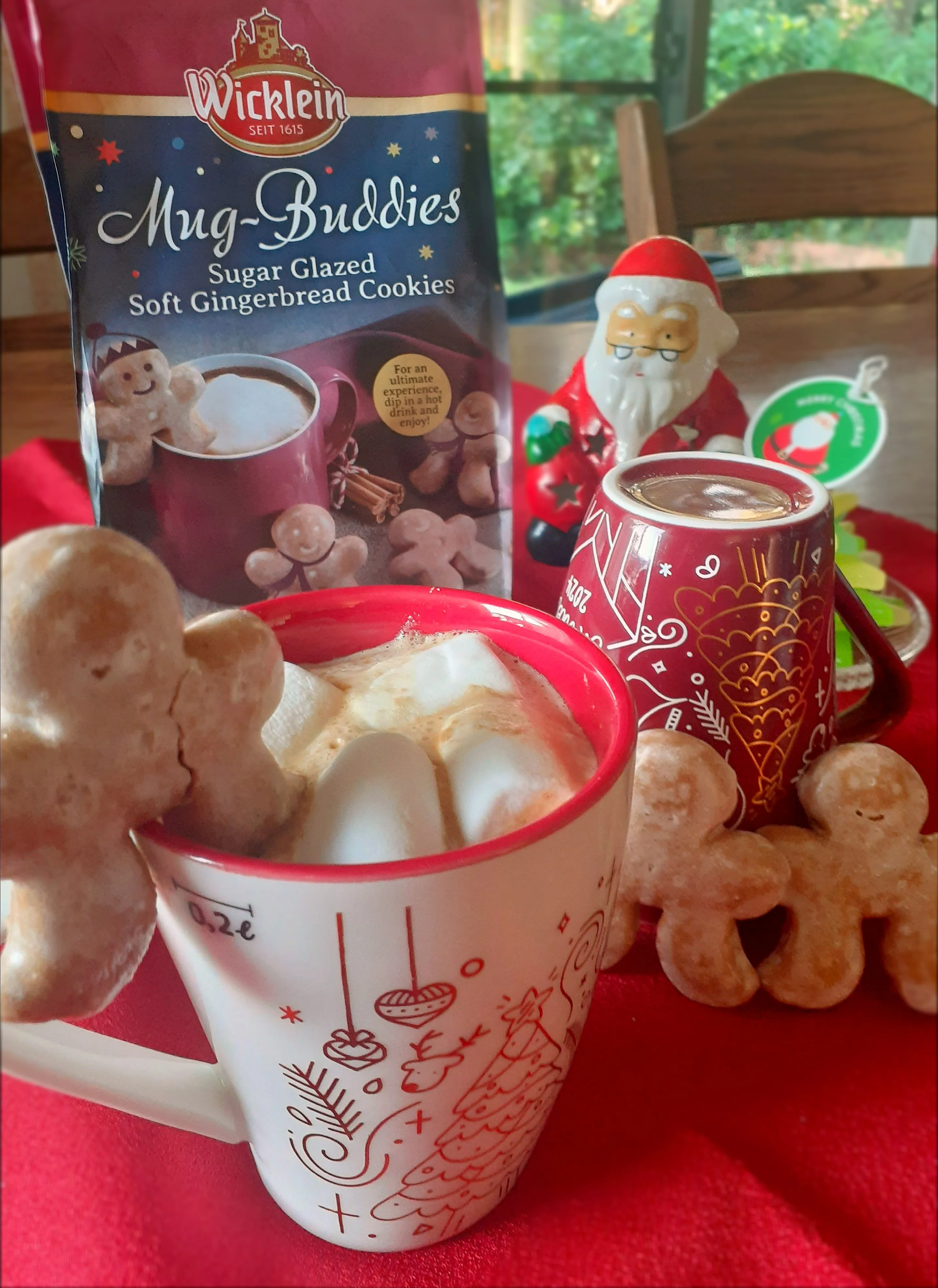 あたたかいカフェオレ☕にマシュマロ浮かべて教えて貰ったジンジャーマンをカップのフチに❣️
