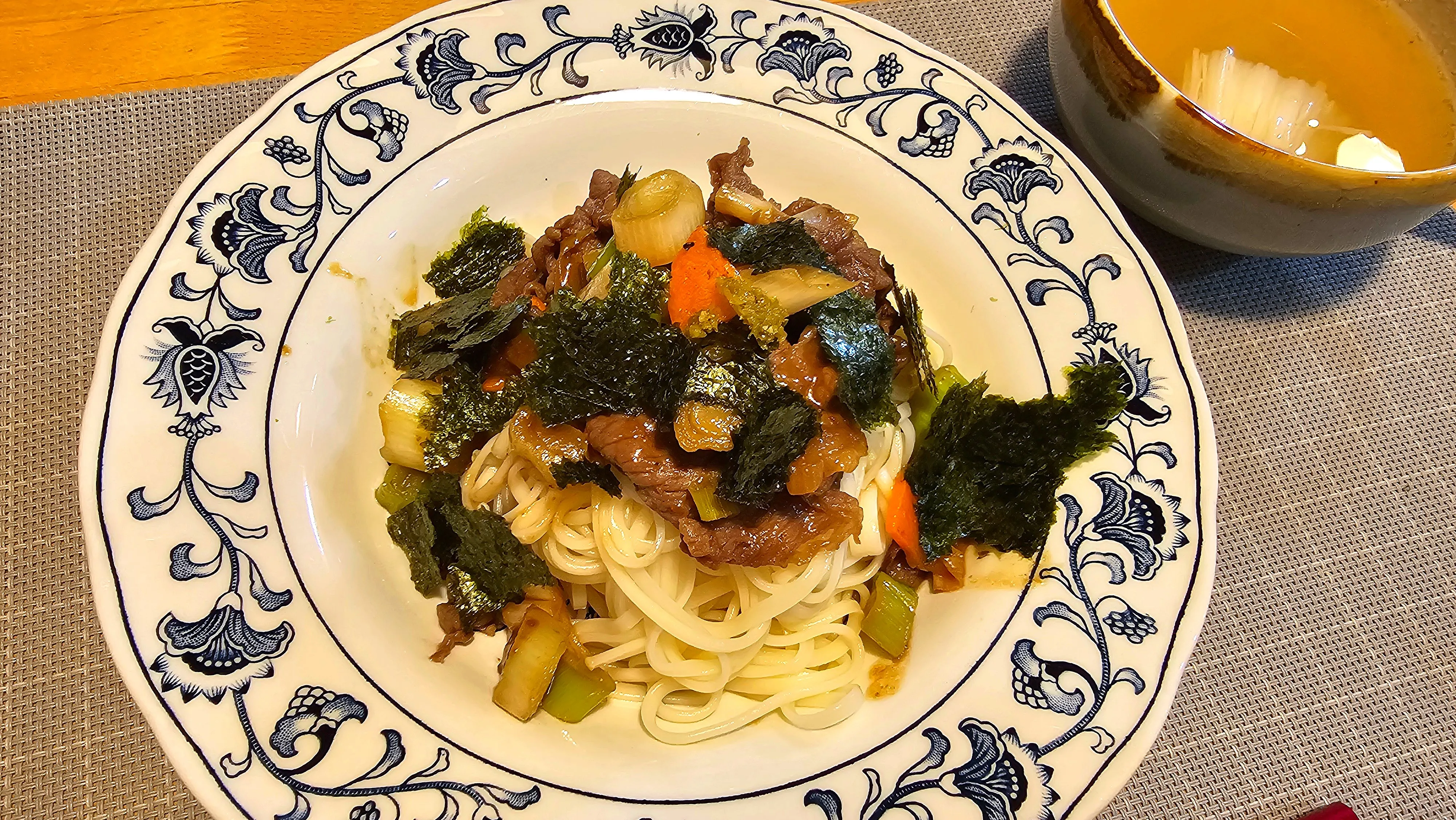 氷見うどんのふし麺で、だし乗っけ冷やしうどん