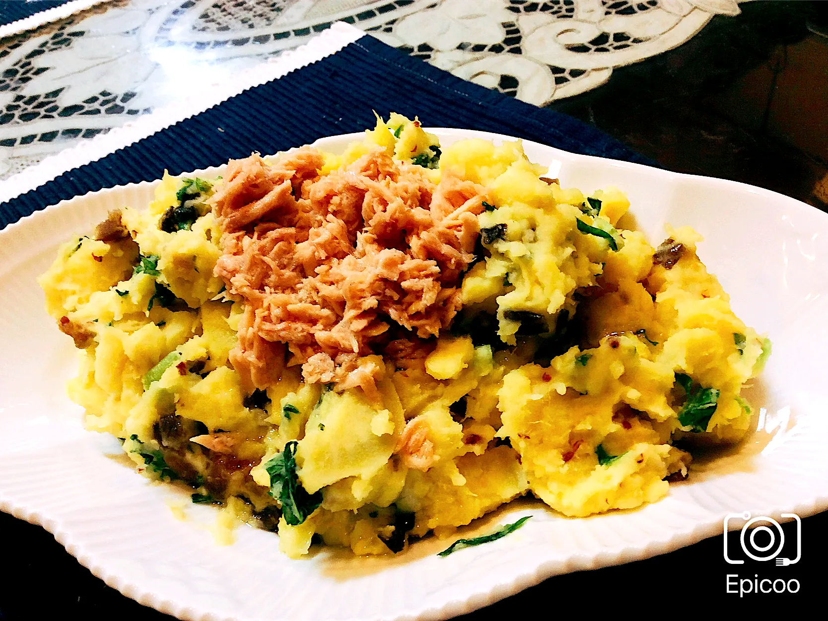 中に、たくあん系を入れて食感を楽しくしましょう #晩ご飯 #サラダ