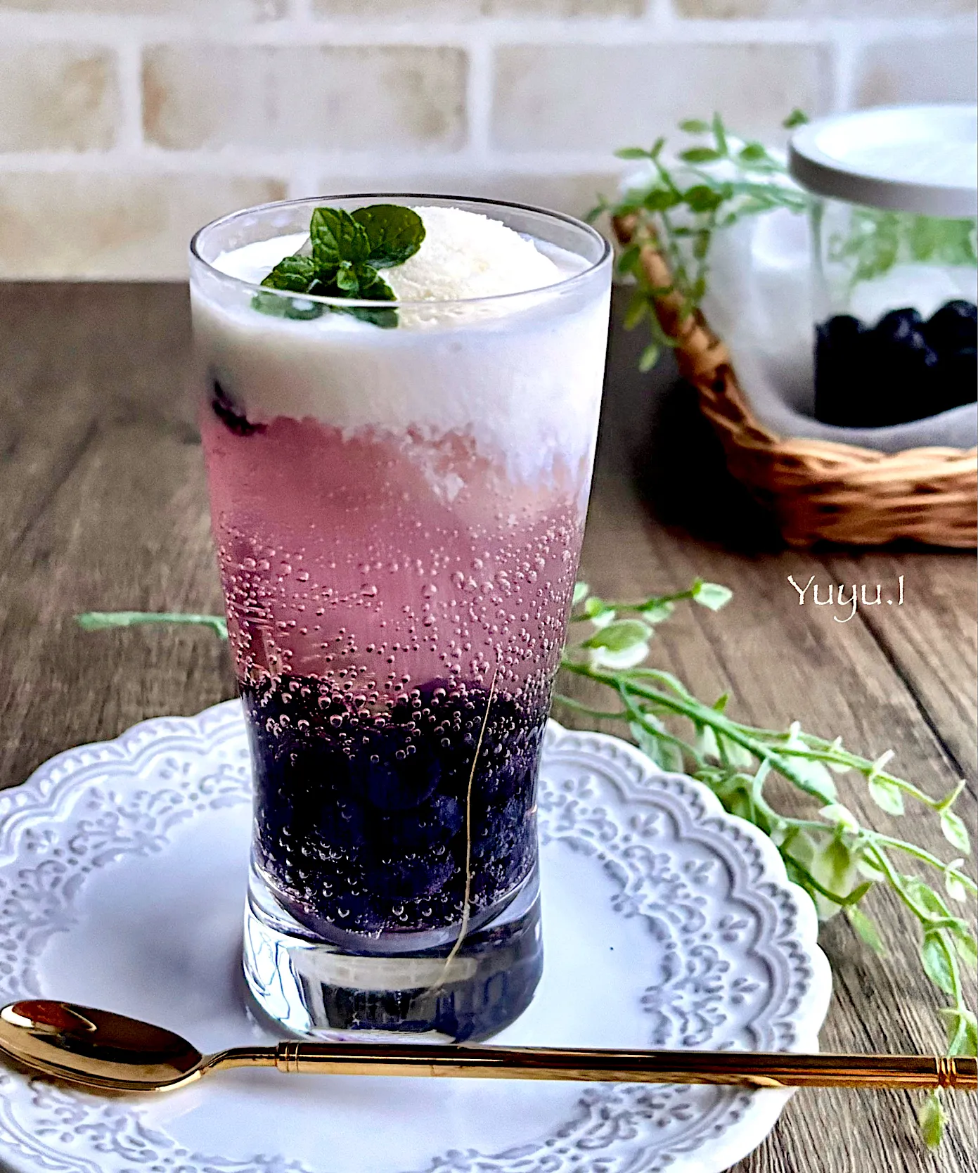 #クリームソーダ #ブルーベリー #炭酸 #アイス #ドリンク #シロップ漬け #新味料