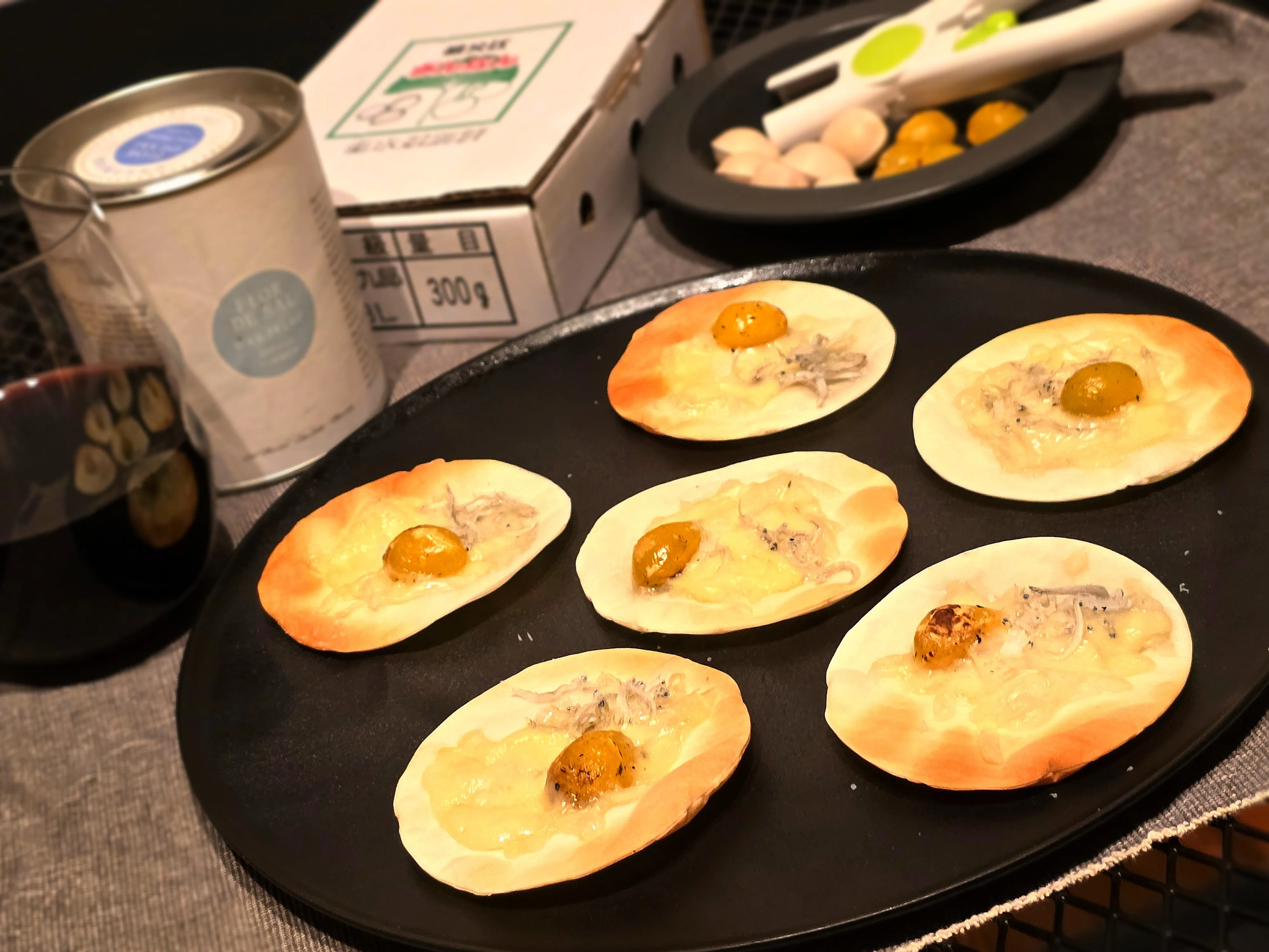 170℃のオーブンで5分位焼いたら仕上げにマヨルカ島の塩