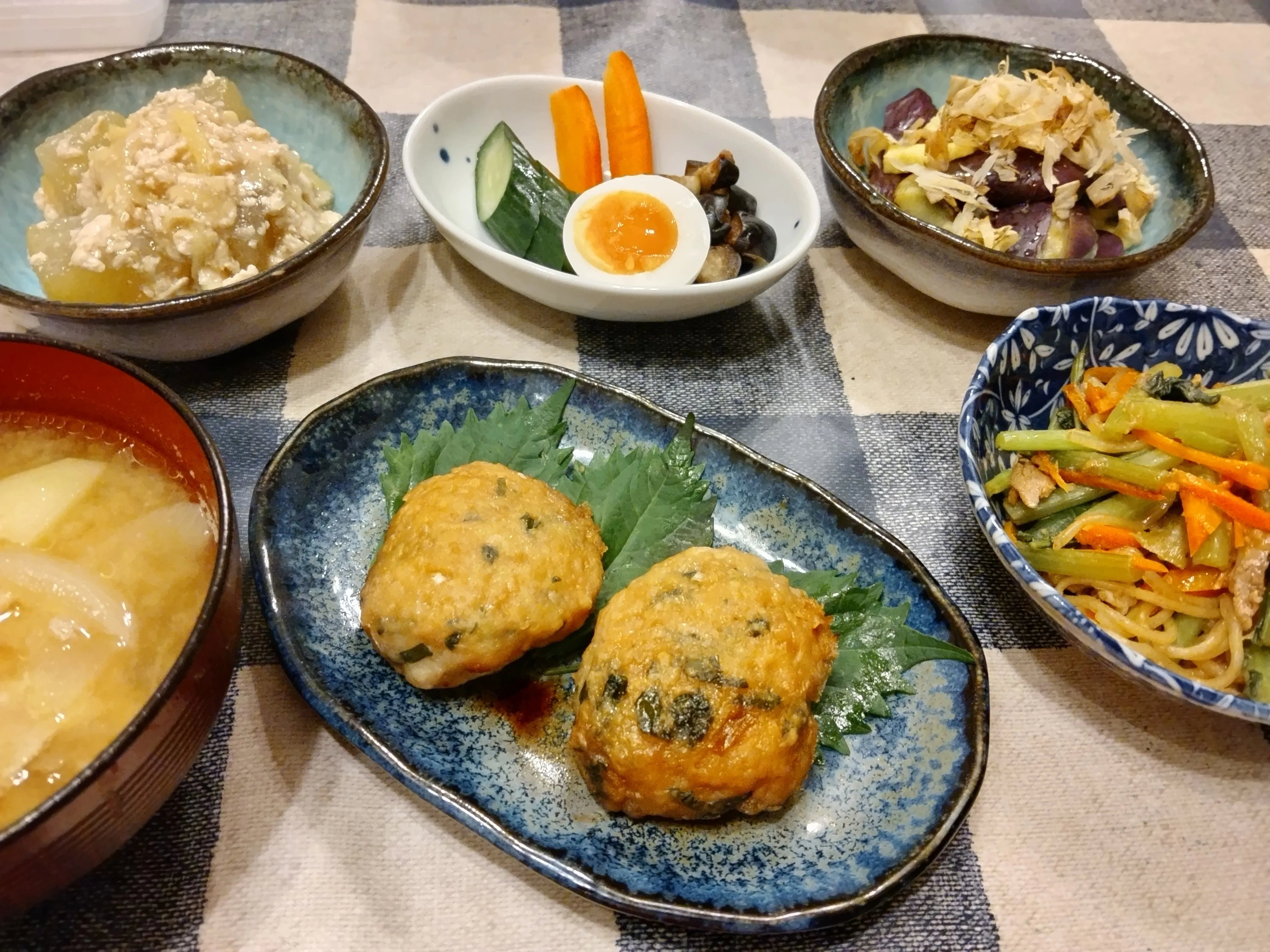 レンチン茄子/ぬか漬け/春雨と小松菜のオイスターソース炒め/豚汁😽