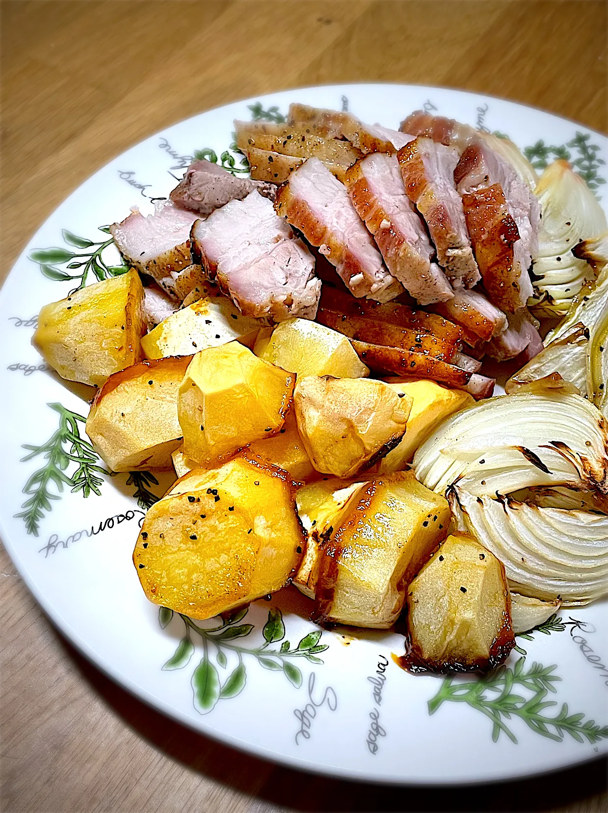 ジャガイモと玉ねぎと豚バラブロックのオーブン焼き