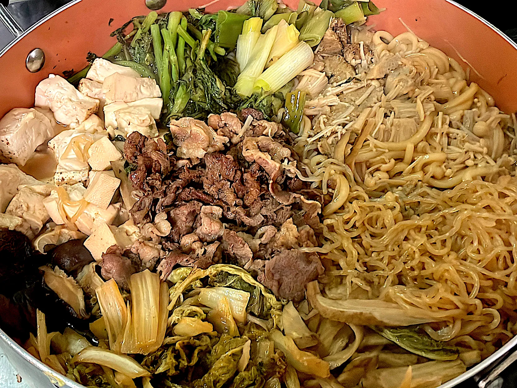 #地元の食材 #地産地消 #簡単料理 #節約料理 #無料食材 #旬の食材 #あるもんで#日の出新味料#訳あり糸こんにゃく#えのき茸#原木椎茸#訳ありブランド美東ゴボウ#白菜#焼き豆腐#春菊#肉うどんの余りの牛肉#すき焼き#中ネギ
