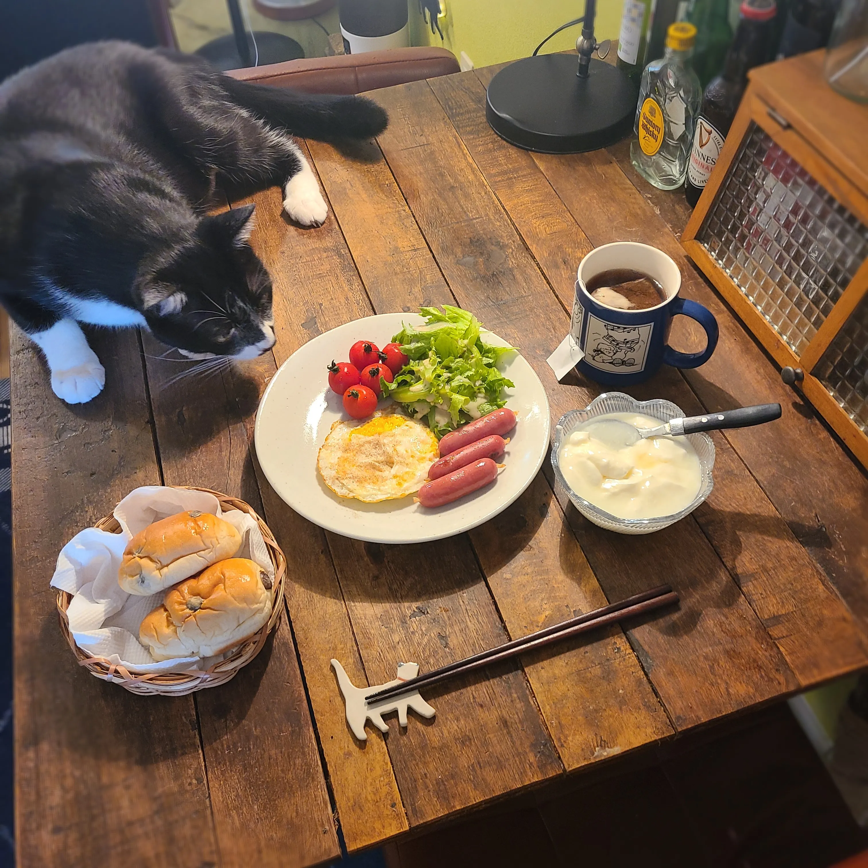 マグは朝御飯のとき、食卓に登ってくることが多いんですが、ごはんを見に来るのはどの家庭でもあるあるなのかもしれませんね🤭