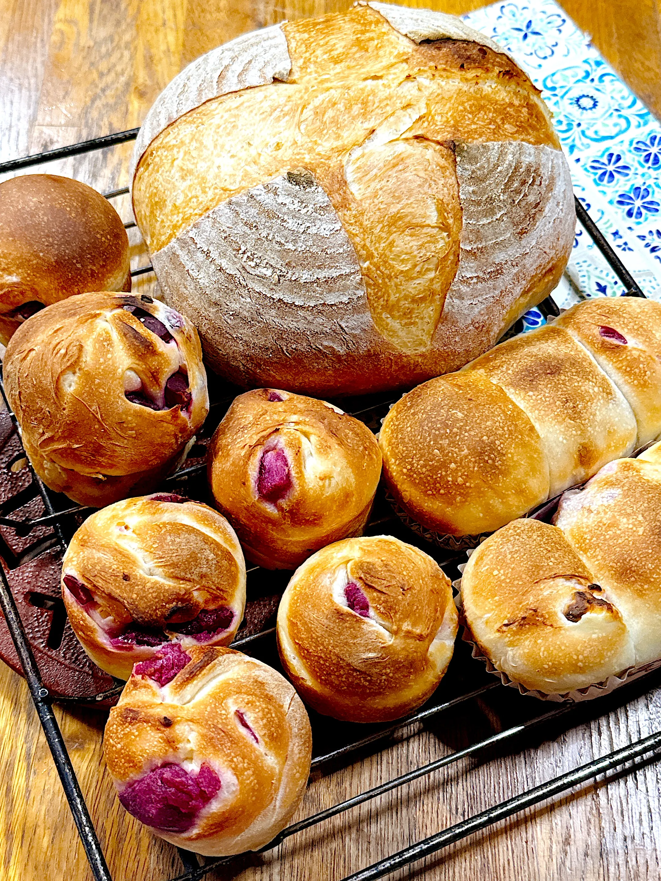 今回は紫芋レモン煮とクリームチーズを小さく切って混ぜ込みました。