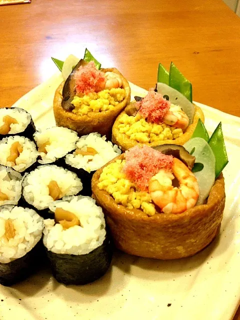 おいなりさん、ヤリイカ中華醬、がんもどき抱き合わせ、...