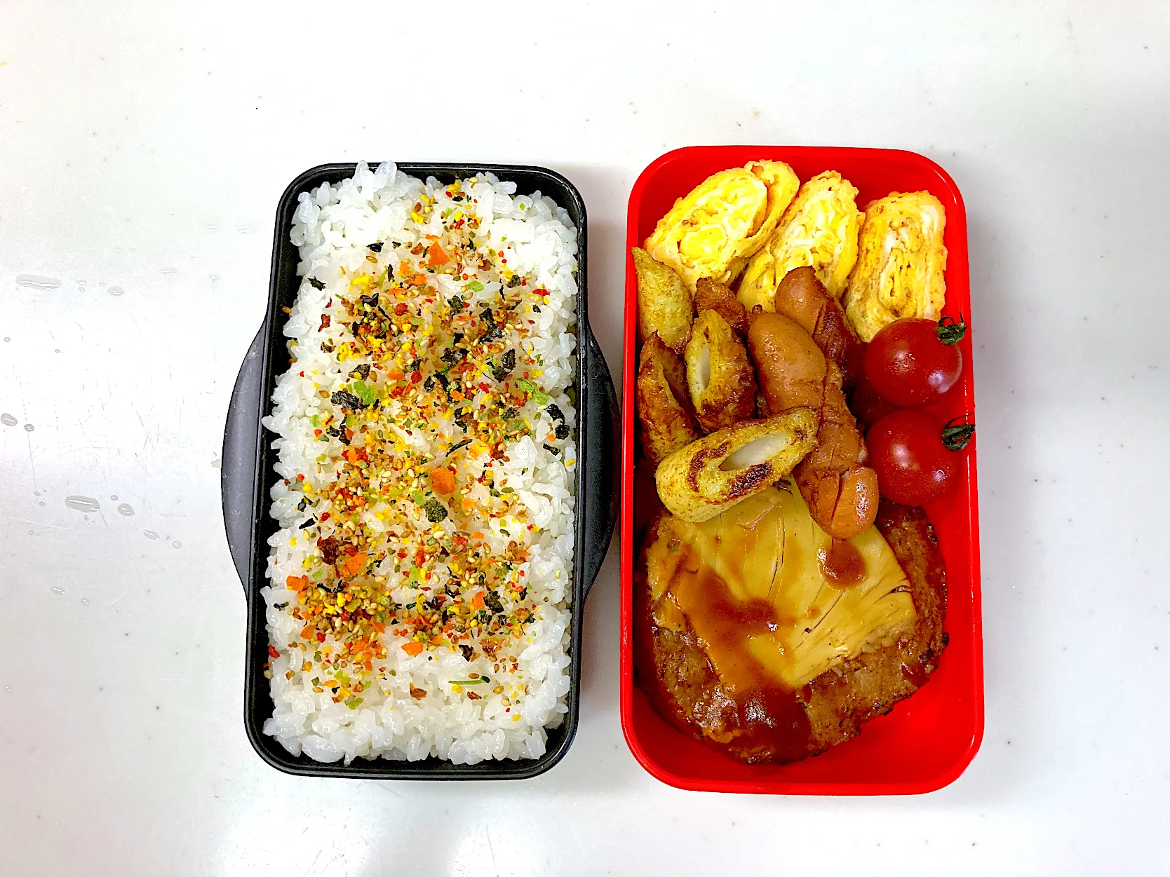 高校生になった次男くんへ ハンバーグとチクワカレー風味弁当