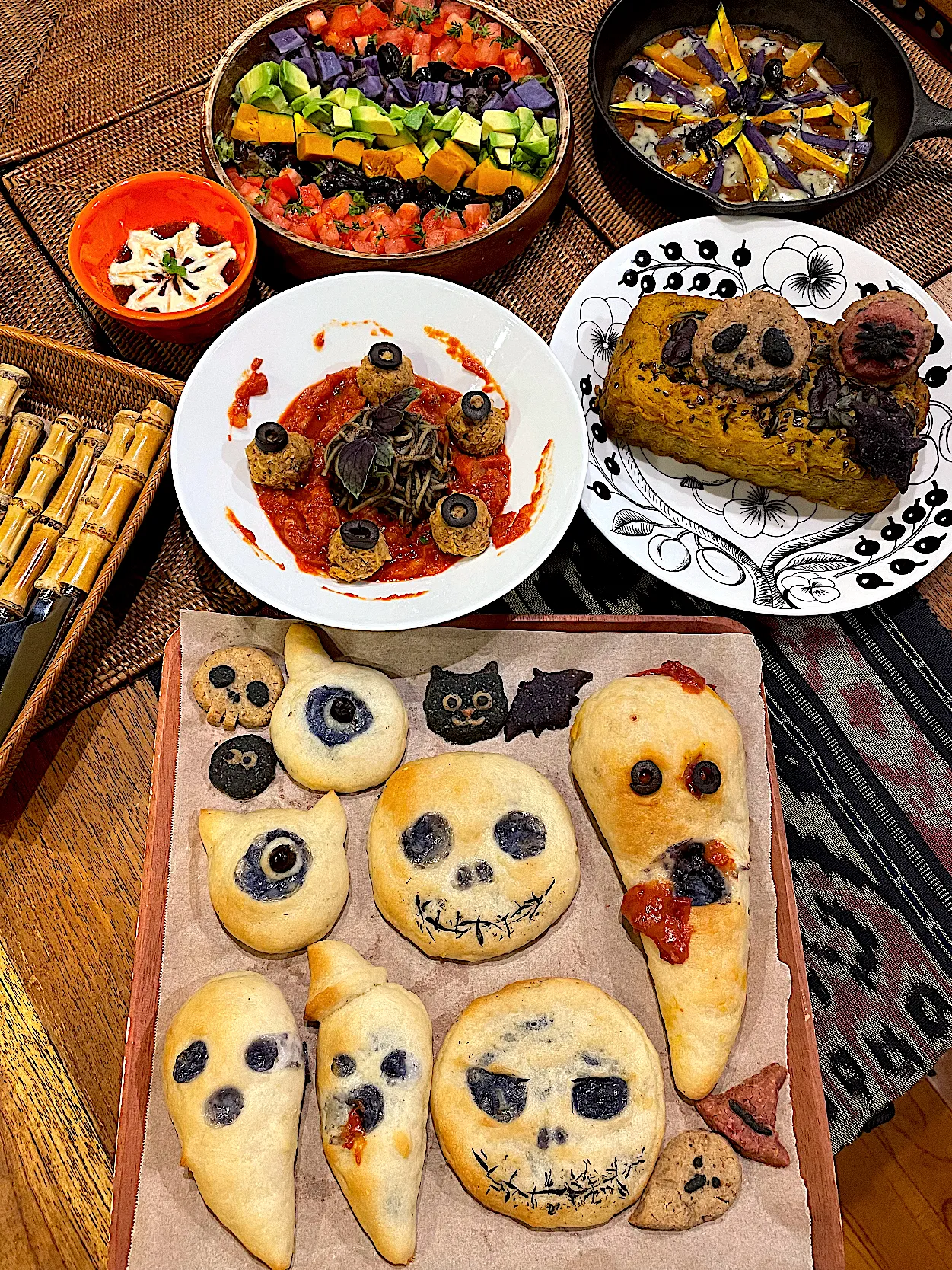 #ハロウィン #コブサラダ #トマトソース #カレーグラタン #米粉パン #パンプキンブレッド #クッキー