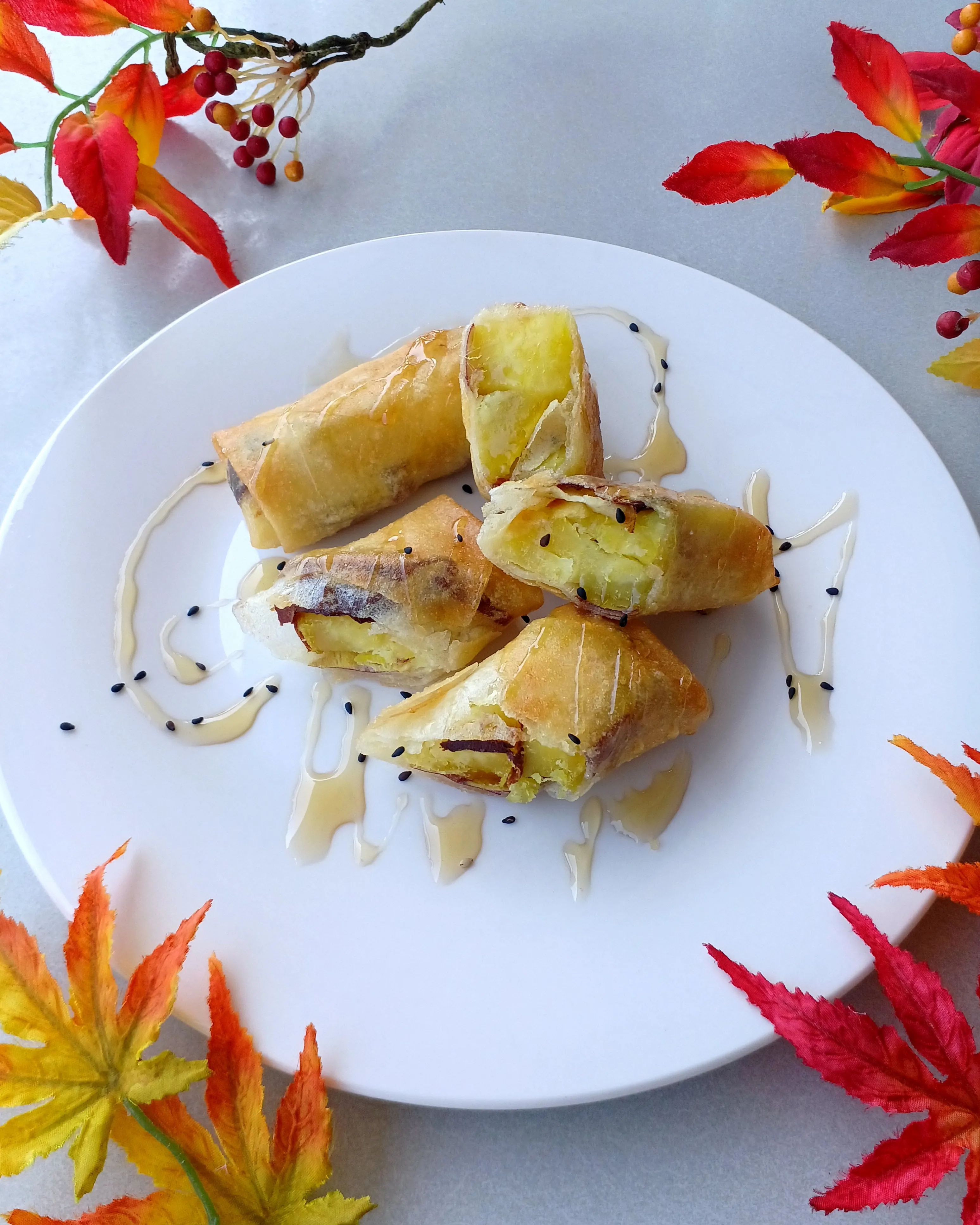 大学芋のたれをかけて黒ごまをふりかけ完成。