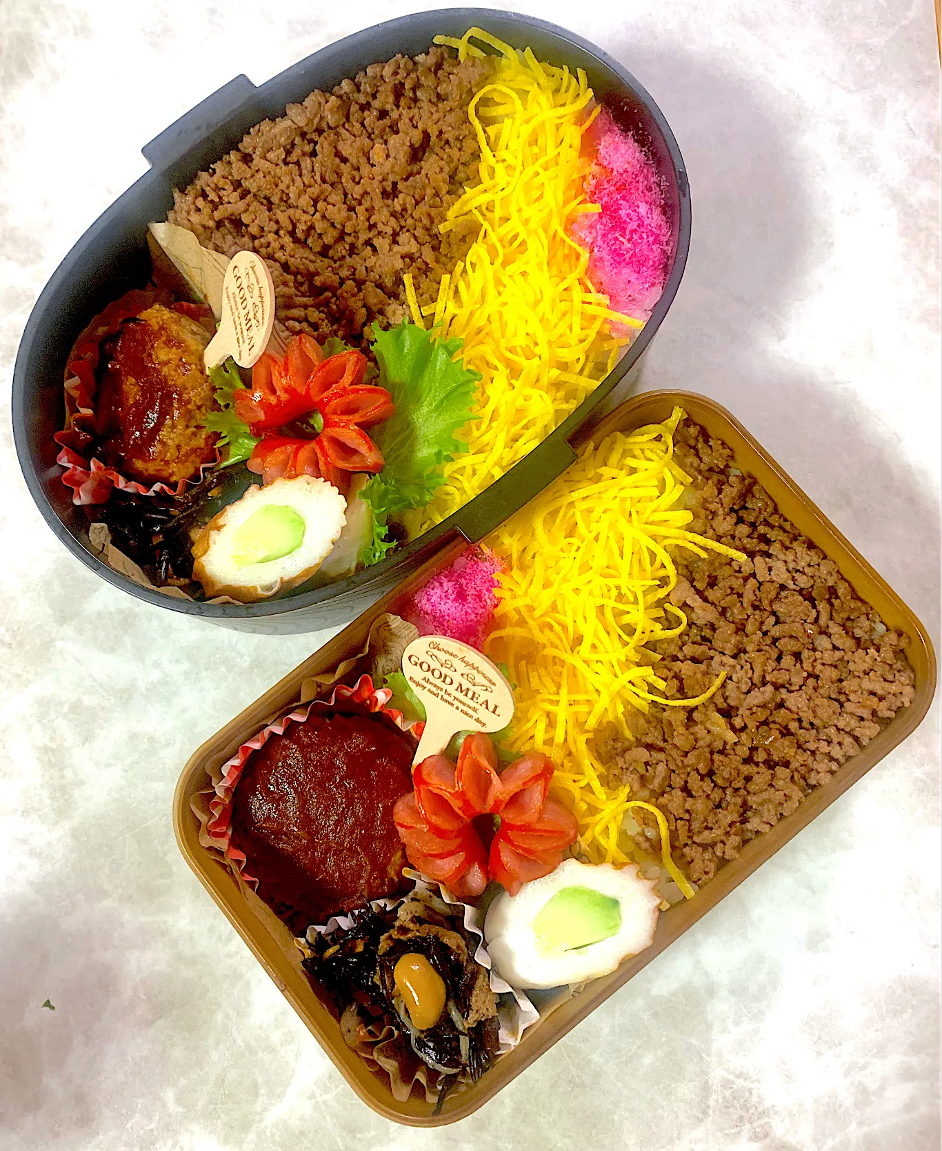 #お弁当 #赤ウインナー#ハンバーグ#ひじき