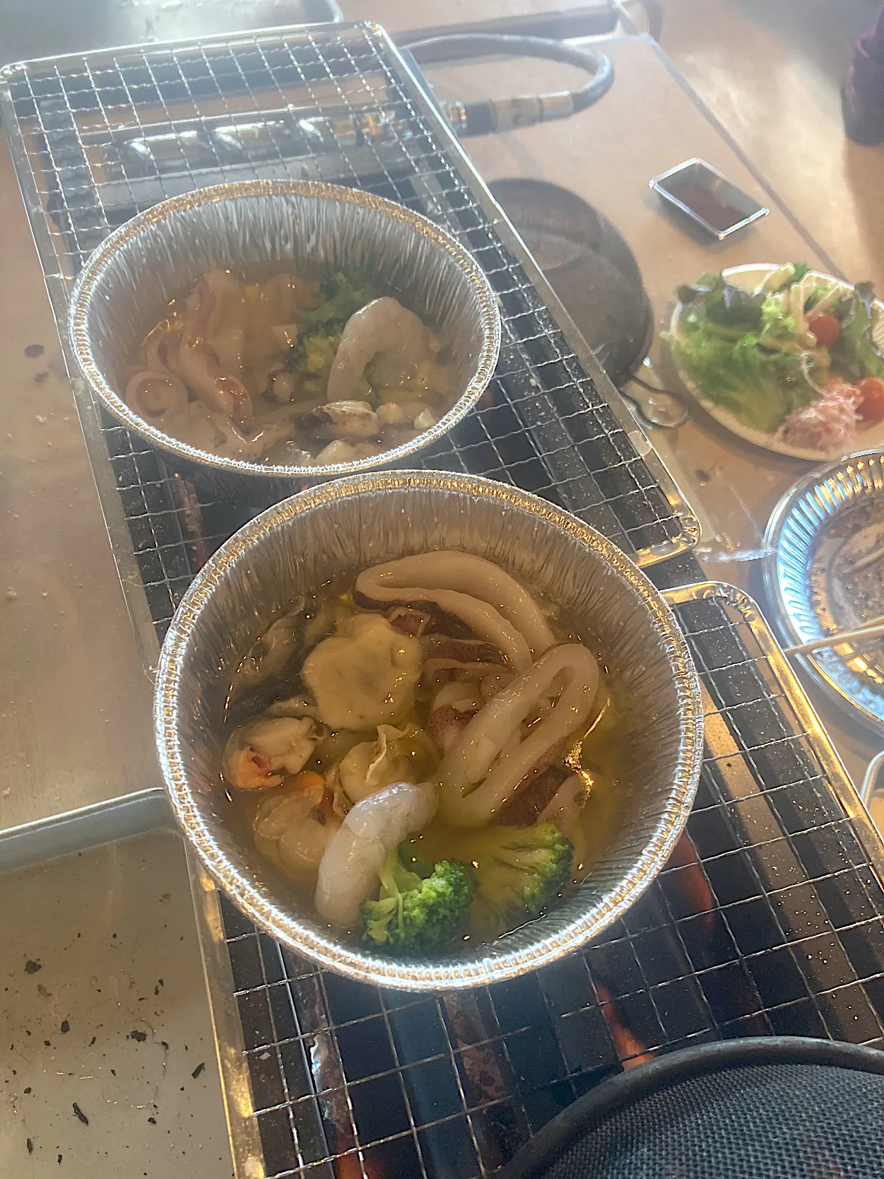 今日の昼ご飯@「海鮮浜焼きバイキング まるはま」さん⑫ 海鮮は焼いたり煮たりするだけでなくオリーブオイルの中でアヒージョにすることもできます