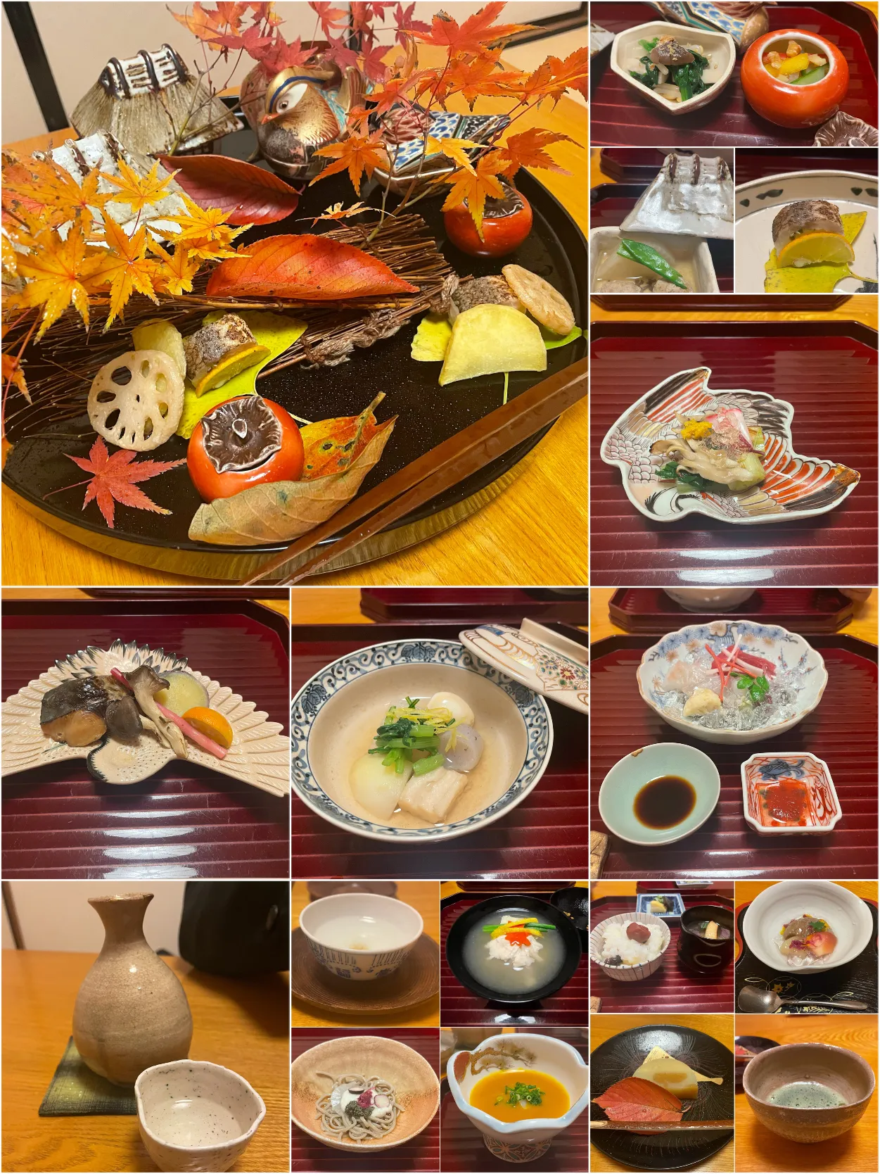 地元金時生姜入の白湯から始まり、先付け、煮物椀、お造り、焼き物、八寸、ご飯もの、お菓子、お抹茶