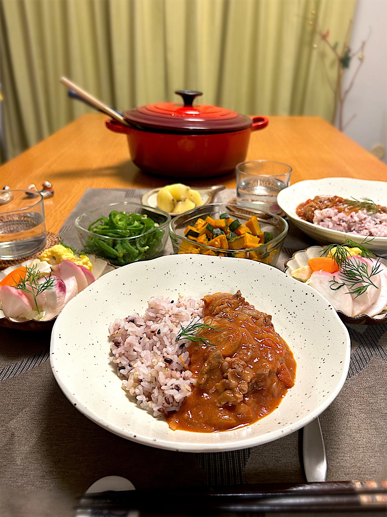ルーなし、デミグラスソースもなしですが、トマト缶にYummy!ガーリック&ペッパーと中濃ソースとお砂糖で味きまっちゃいました🙌