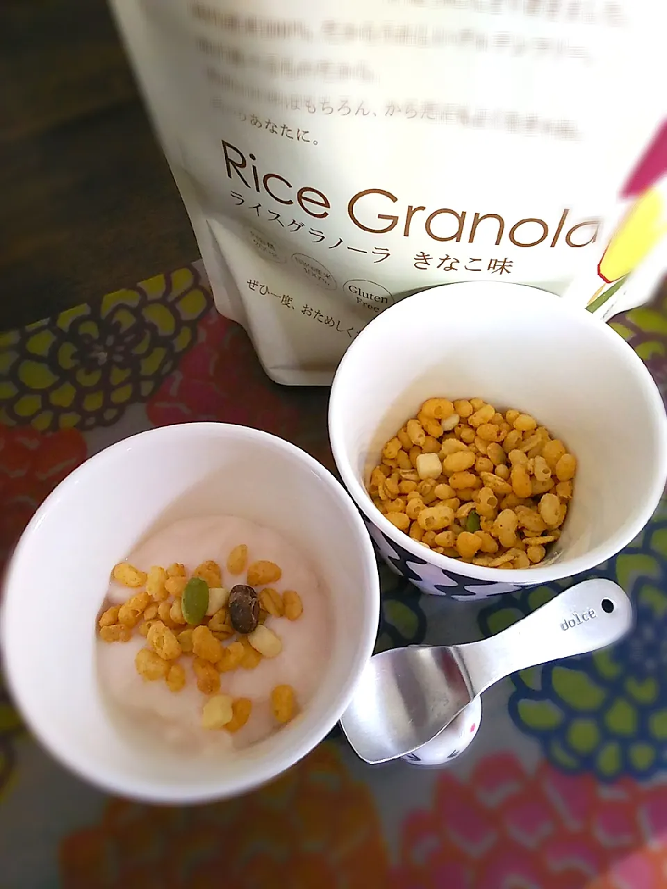 きなこ味は濃すぎず、アレンジしやすそう🎵今朝はメープルに牛乳プラスしました。少食なコドモにもやさしい甘さとサクサク食感が好評です😆🎵🎵