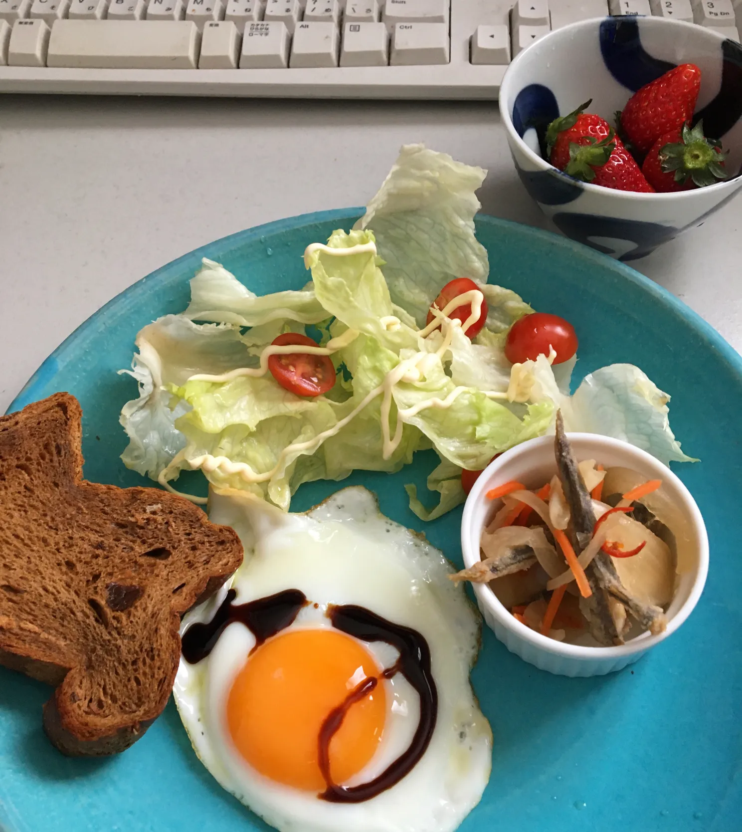 お片付け中につき、汚い机で朝ごはん😭 ちょっと悲しい