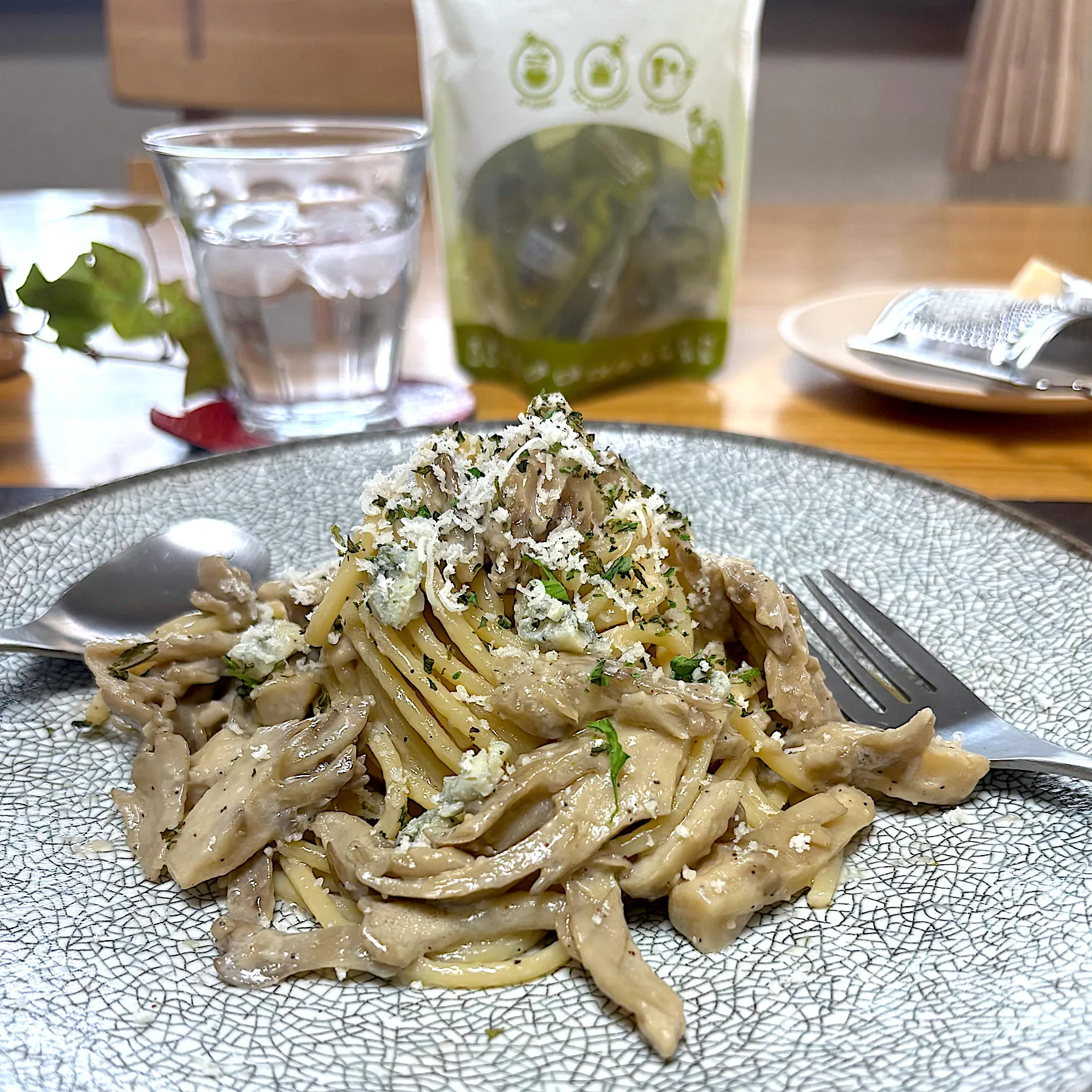 キノコ達はオリーブオイルでしっかり焼いてからソースに絡めてます。