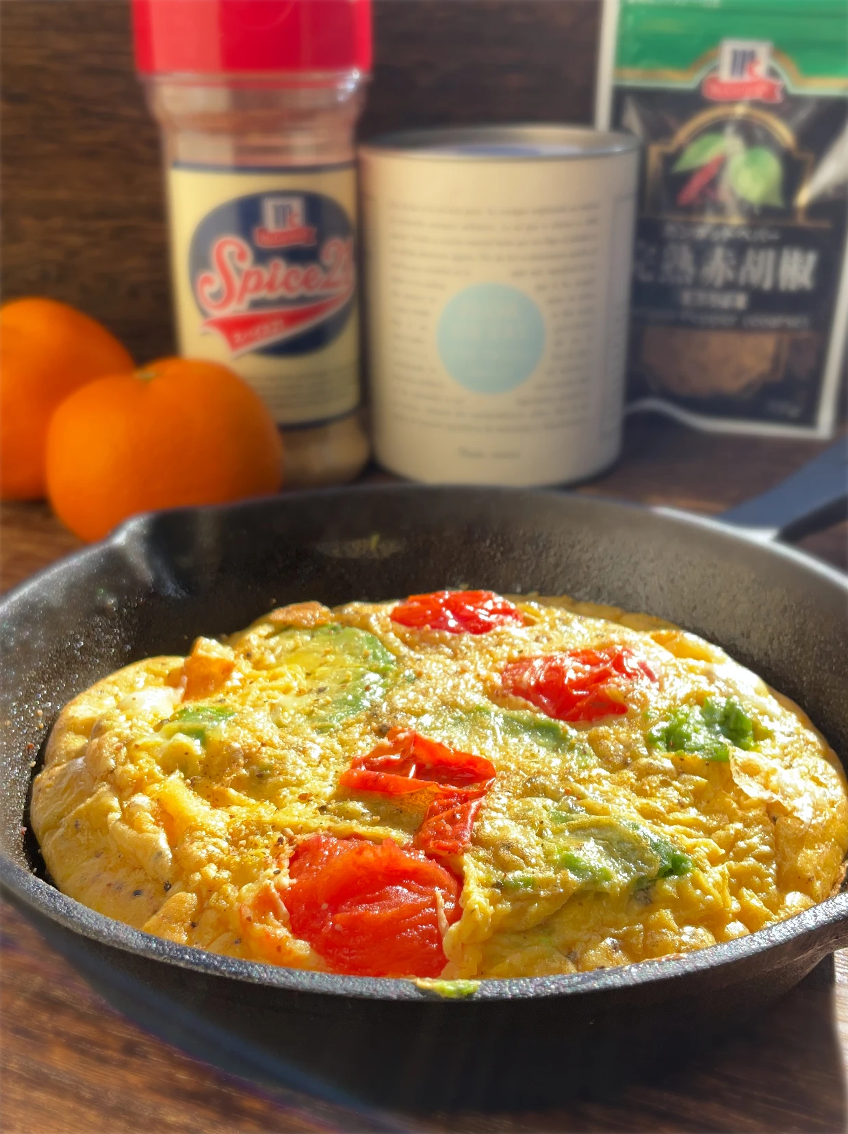 #snapdish #ユウキ食品#おいしい世界ごはんパートナー #世界調味料パスポート #世界の食卓探検隊 #マヨルカ島の塩 #スパイス21 #スパニッシュオムレツ #スペイン #アボカド #チーズ #スキレット #完熟赤胡椒 #トルティージャ