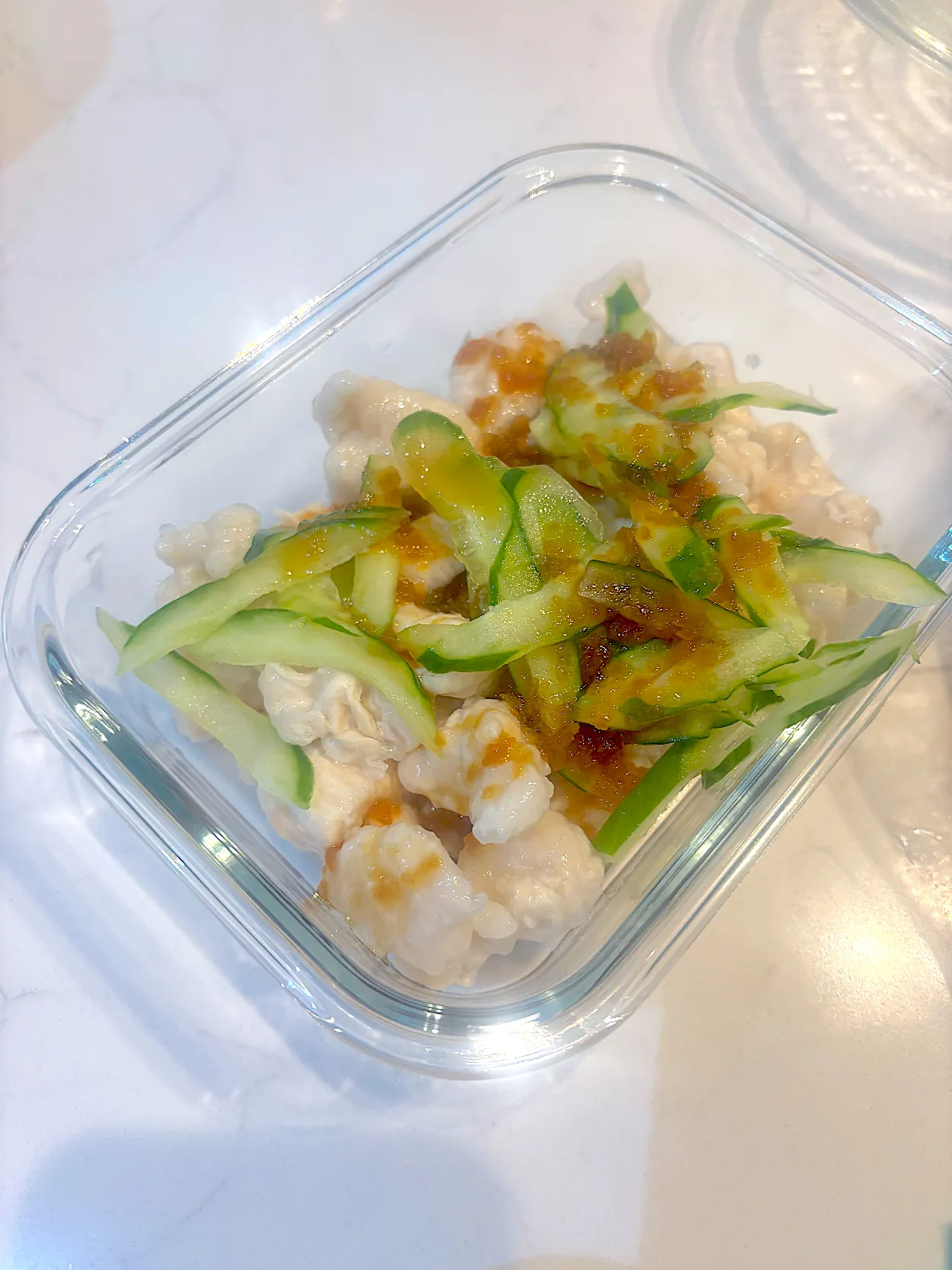 ささみ塩麹漬け茹で→キュウリポン酢