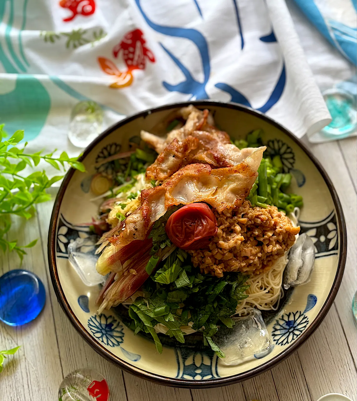 大葉、薬味ネギ、茗荷、梅干しで