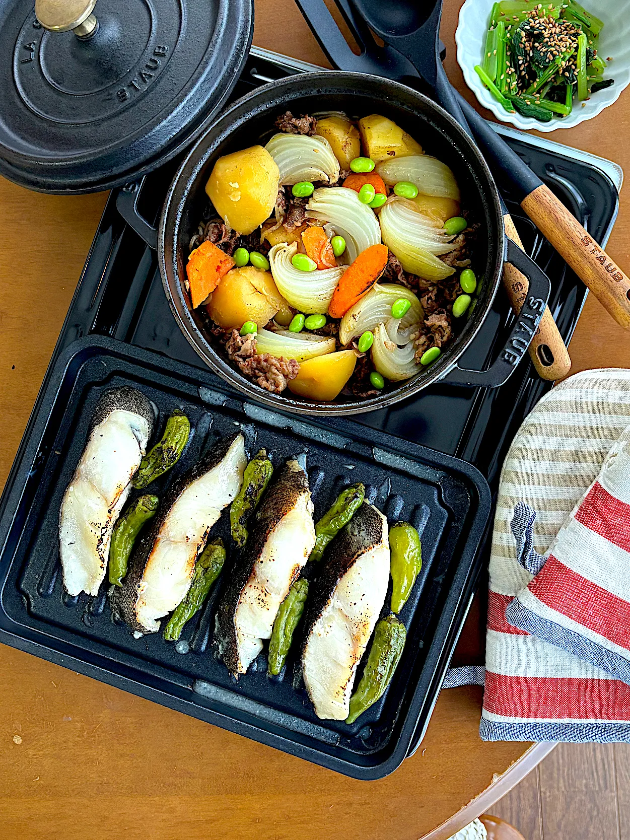 西京焼きで空いているスペースで肉じゃがも作りました😊