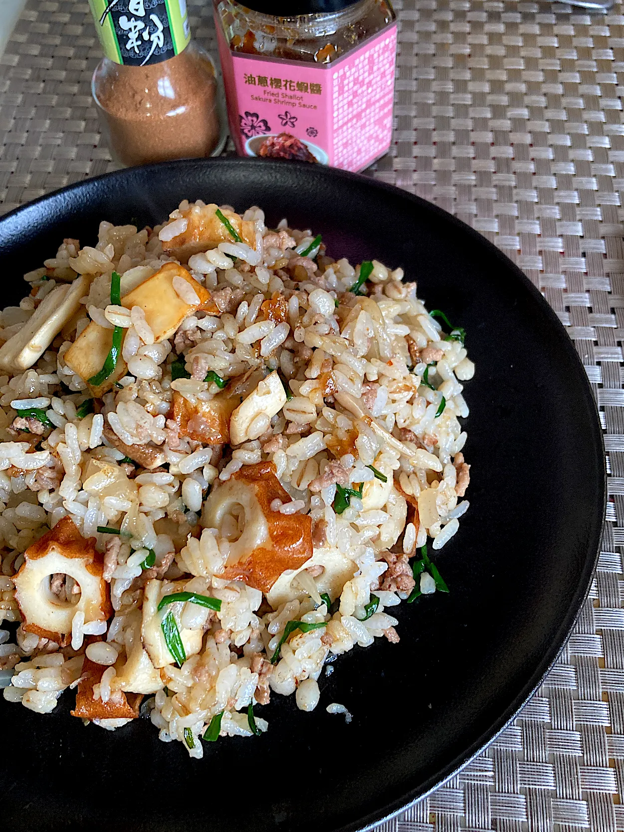 ユウキ食品さんの五香粉を使ってちくわとアリものチャーハンにしました😊