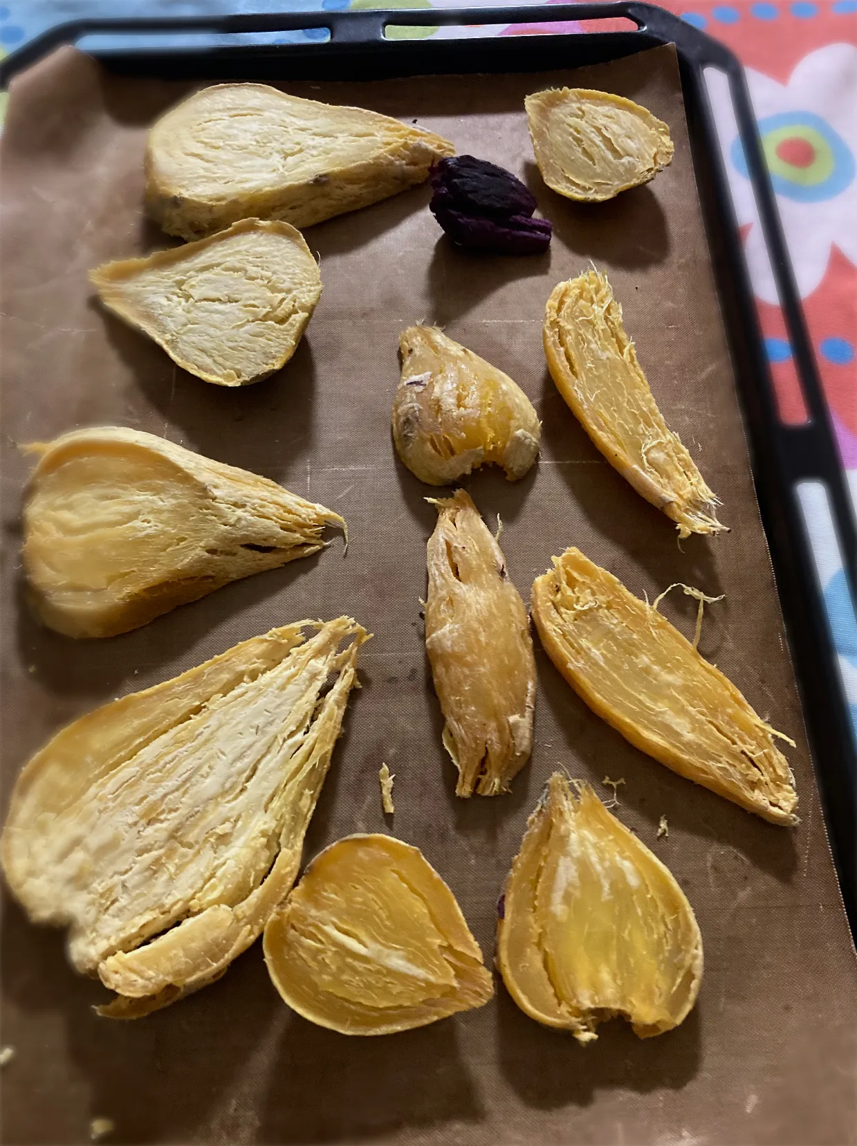 一個だけ小さい子が居た紫芋は見た目はグロいけれど小さいながら1番干し芋らしくなっておられた✌️