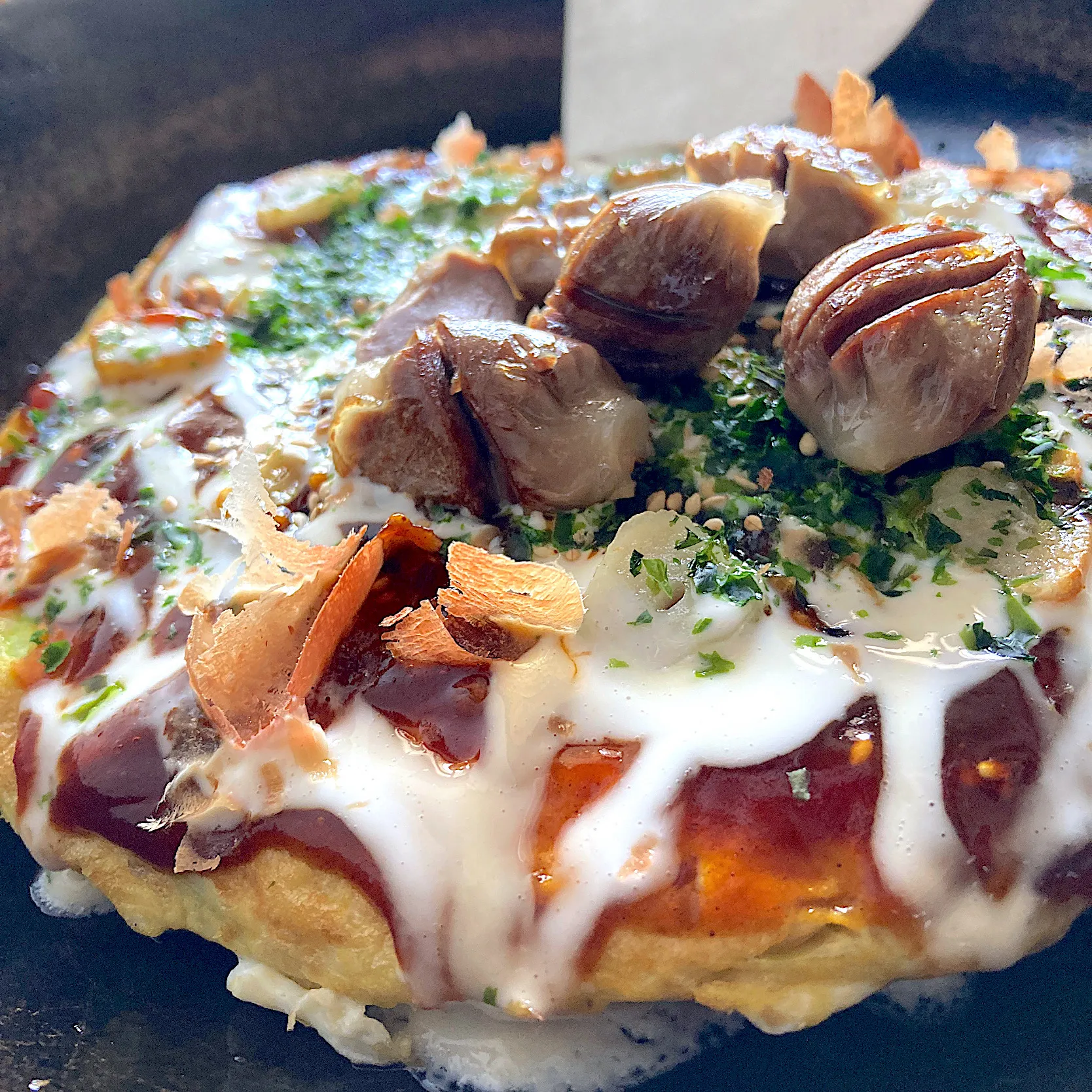 最近はお好み焼きに白胡麻かけるようになったんよ。これまたよう合うんよ。
