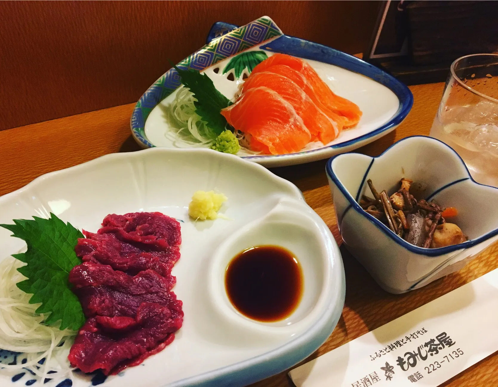 長野で山の幸😆 信州サーモンと馬刺し|suneさん