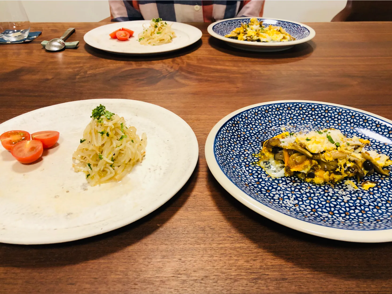 もやしのマリネ、舞茸としめじのレヴェルト
