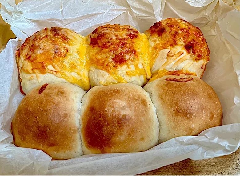 今日のパンは #オーバーナイト で #しっとりパン #ピザパン と #プレーン です。#復温 も #レンチン でしたので楽☺️