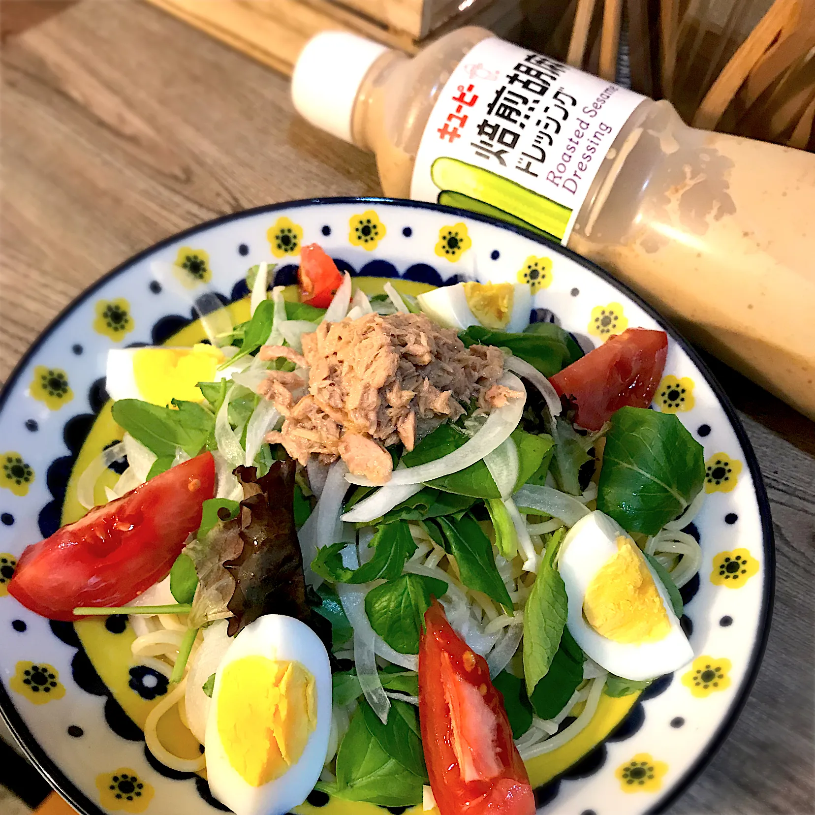 #晩ご飯 #スパゲティ #サラダ #ごまドレッシング