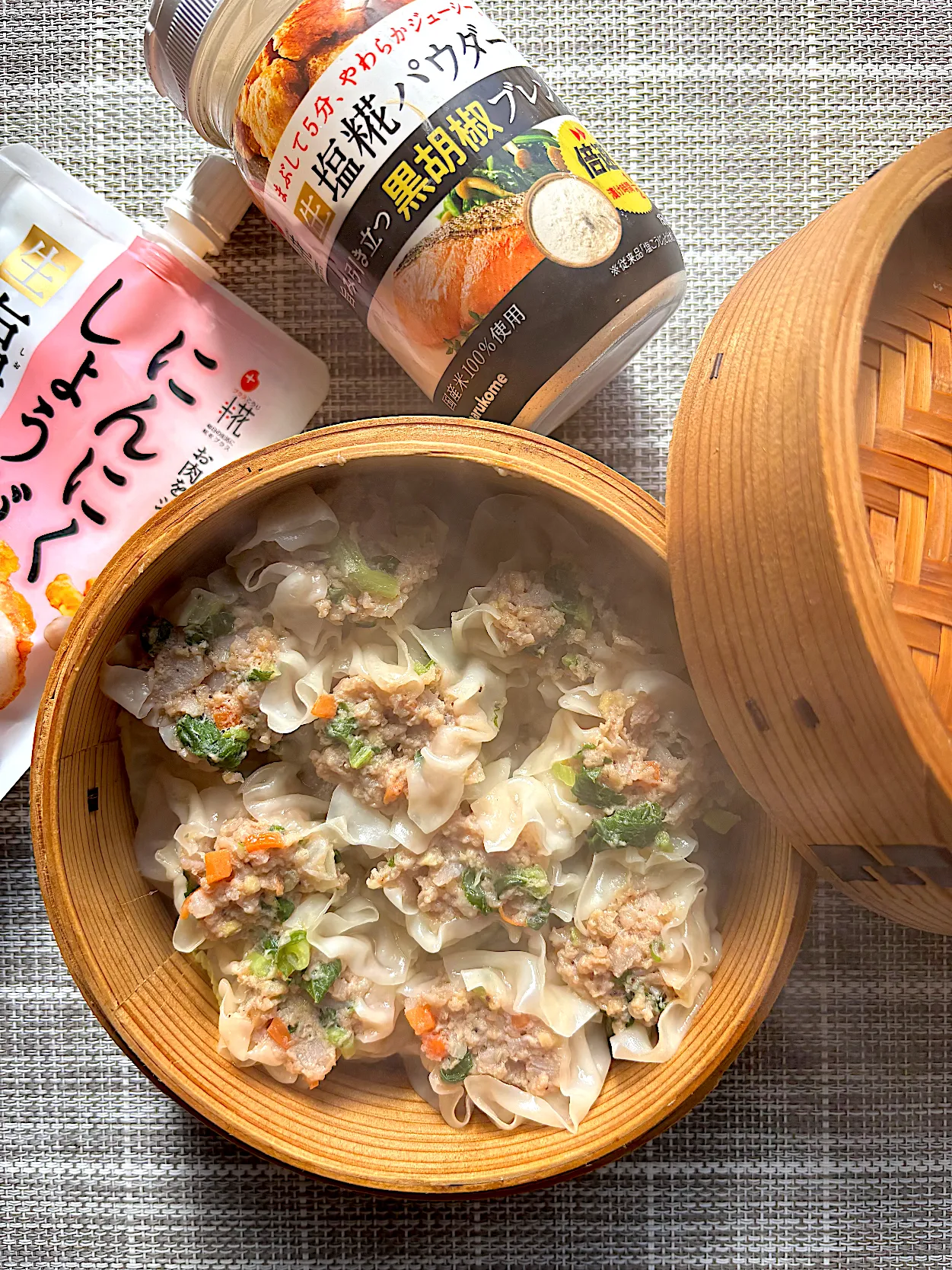 にんにくとしょうがの入った塩麹と黒胡椒ブレンドの塩麹で味わい深く、コリっと軟骨の食感がたまらないシュウマイ!