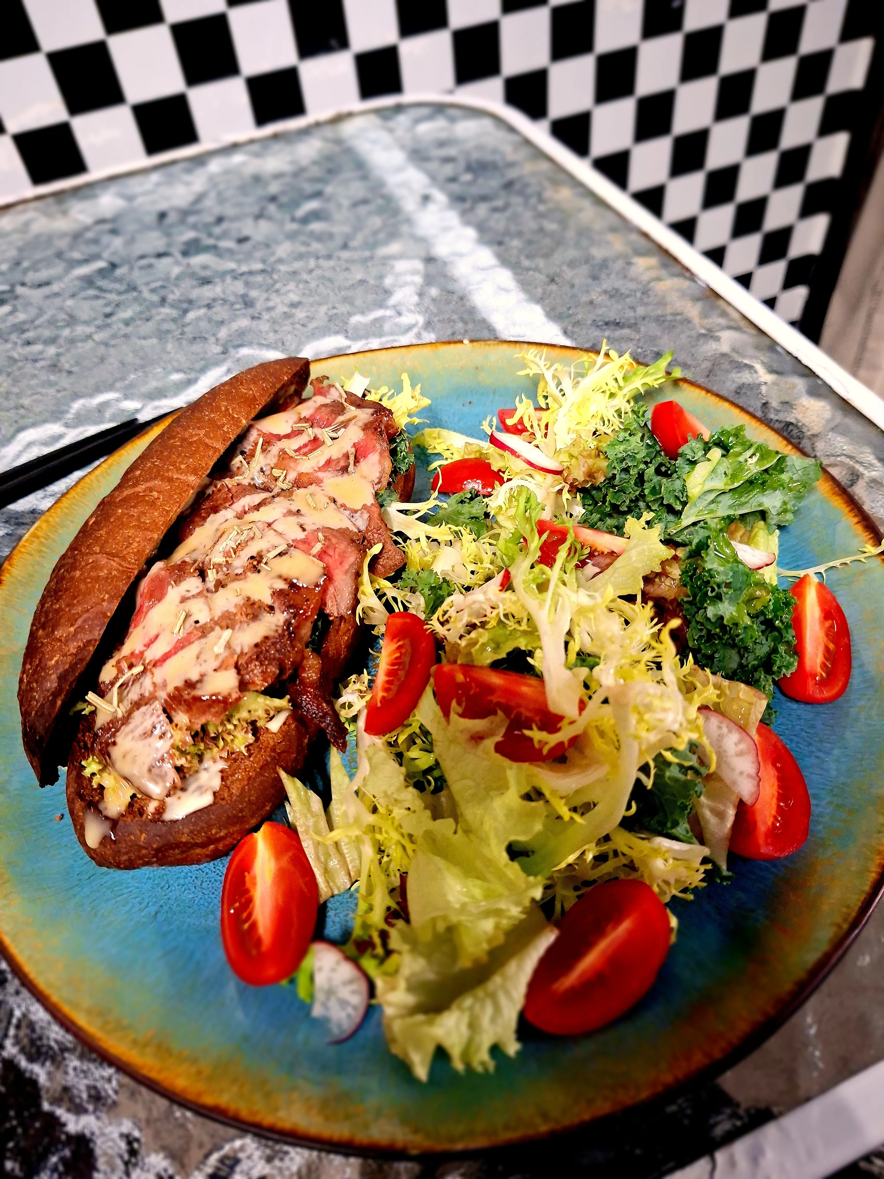 牛扒黑糖飽配沙律🥰