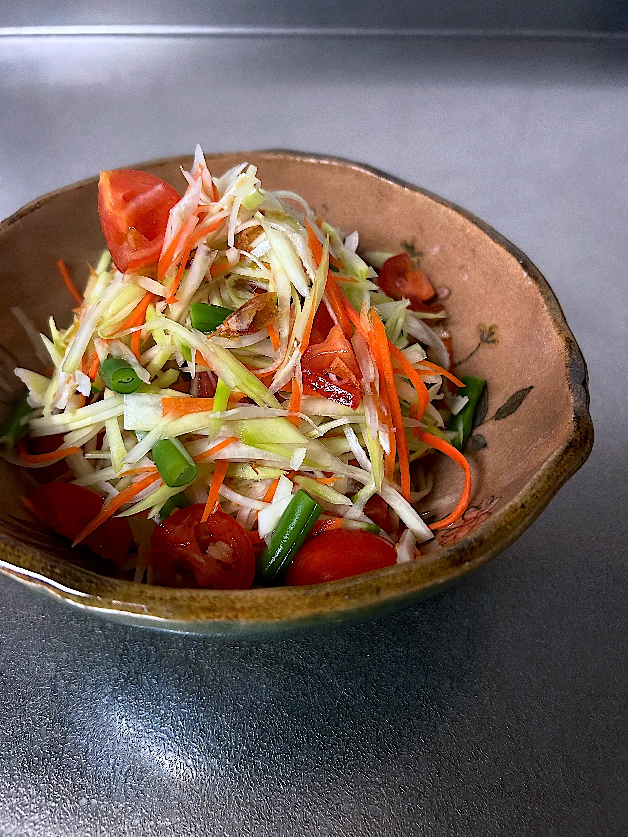 #豆腐と玉子の餡かけ丼 #カボチャサラダ #ソムタム
