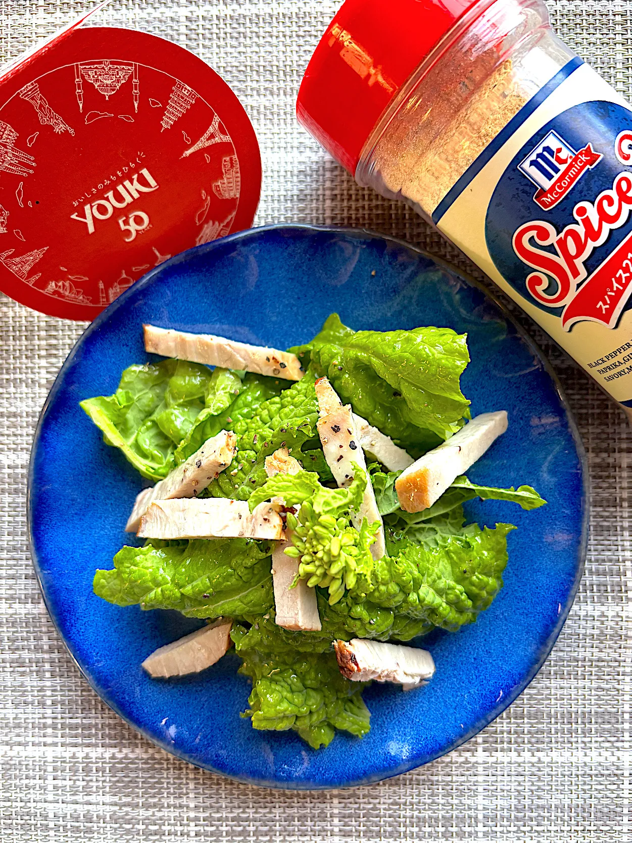 爽やかな苦味とスパイシーな自家製ドレッシングで菜の花とチャーシューのサラダ!