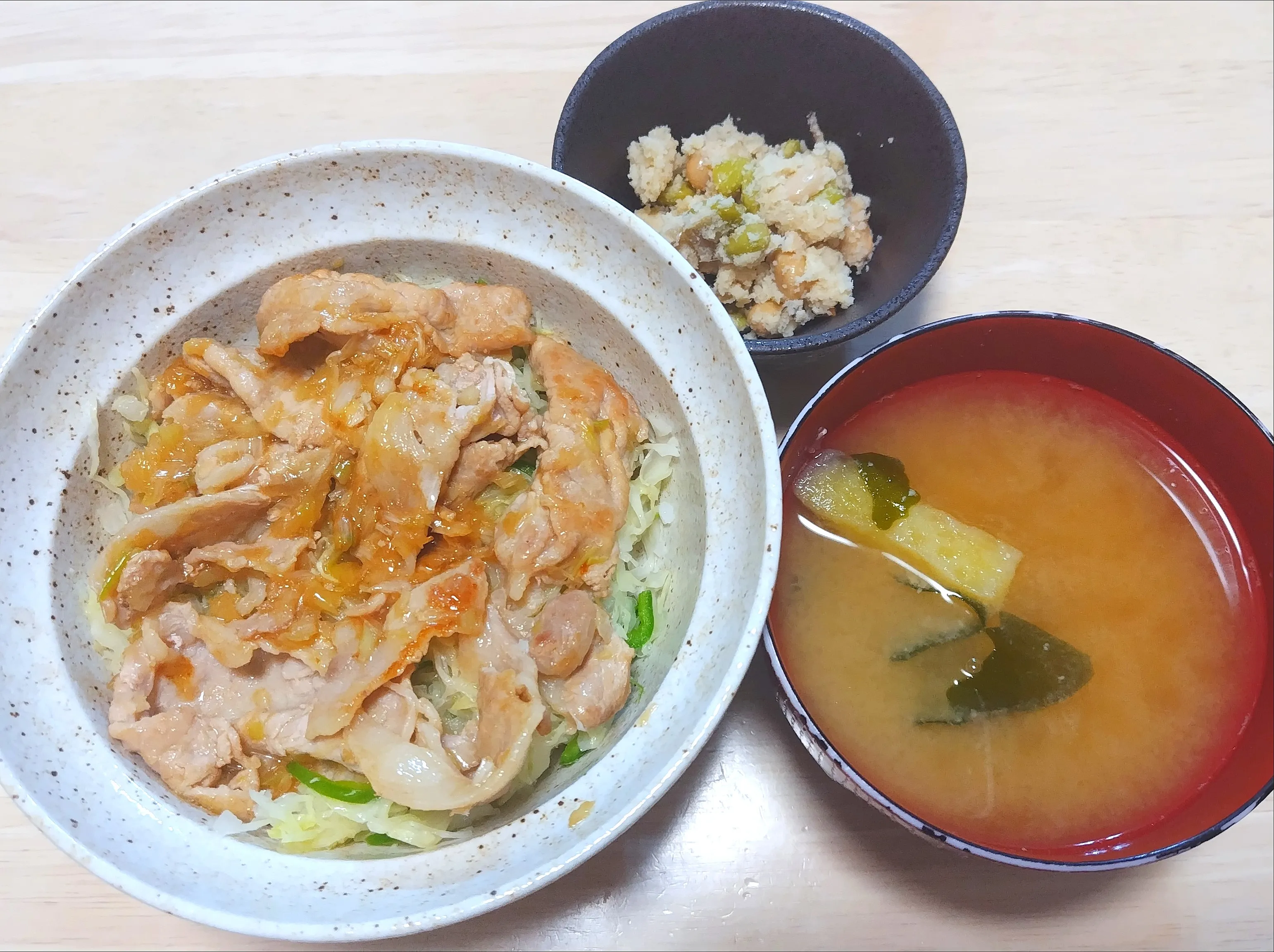 #晩ご飯 #肉料理 #野菜料理 #どんぶり#お味噌汁#卯の花#パルシステム