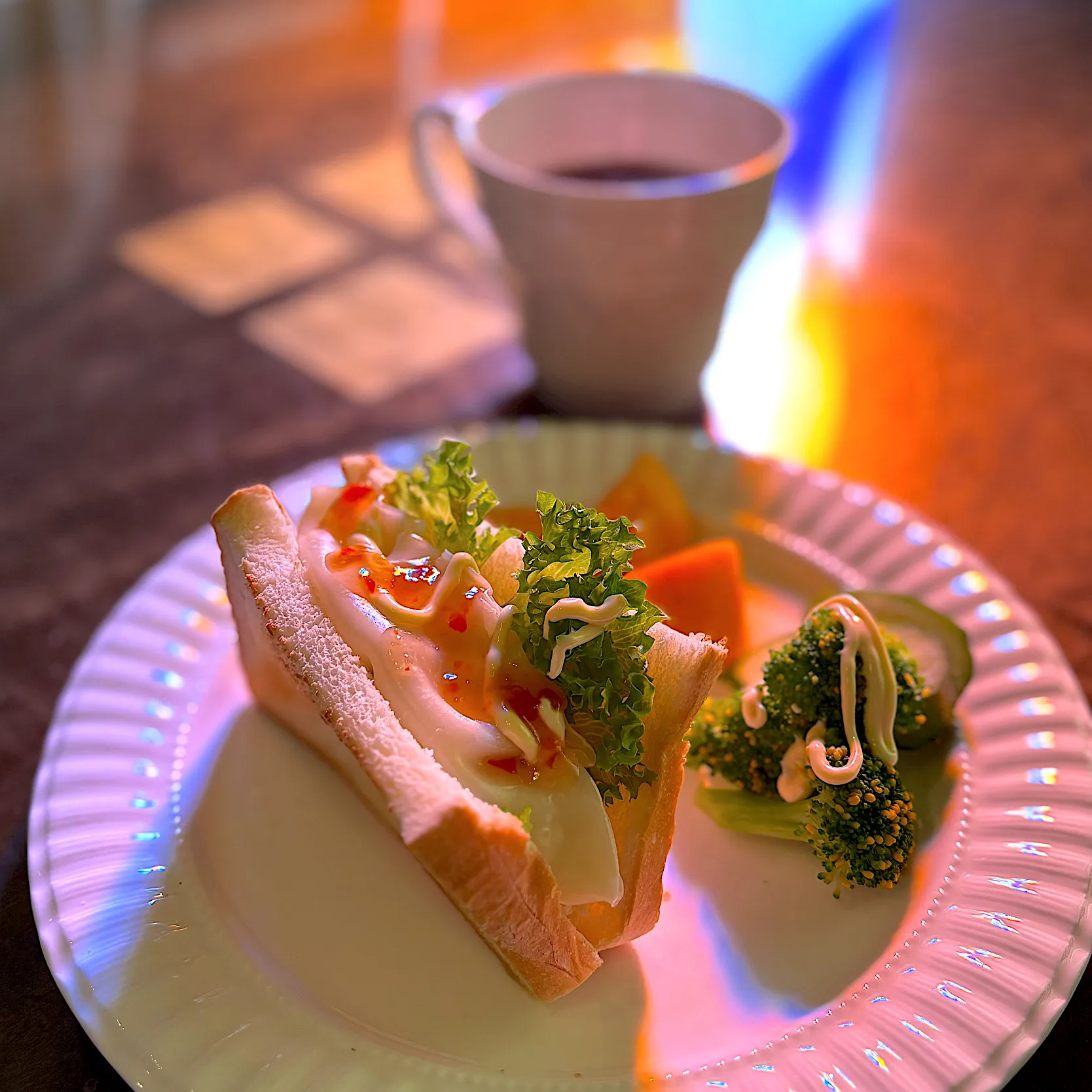 マンドゥの大きな餃子をレンチンしてサンドイッチにしました🤗 #かっちゃん杉 #クックパッドアンバサダー2023かっちゃん杉 #かっちゃん杉の朝ごはん #かっちゃん杉のサンドイッチ
